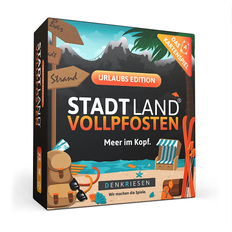 DENKRIESEN - STADT LAND VOLLPFOSTEN® - Das Kartenspiel - URLAUB EDITION - ''Meer im Kopf.'' Die urlaubsreife Edition des offiziellen Kartenspiels von STADT LAND VOLLPFOSTEN mit 120 Spielkarten.200 kreative und lustige Kategorien für einen unvergesslichen Urlau...