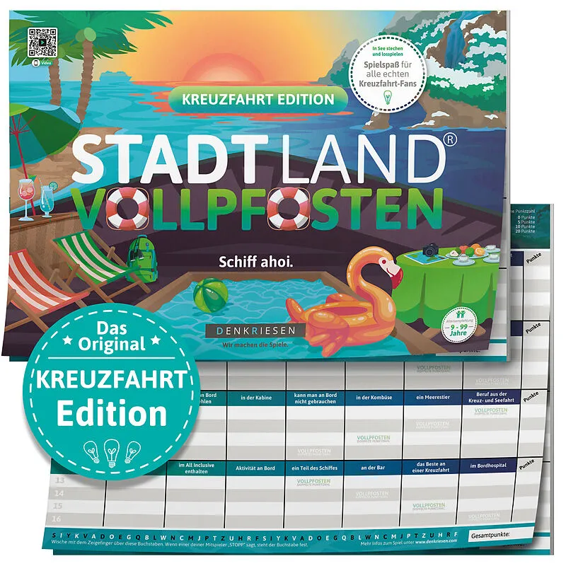 Die nautische Edition des Kultspiels SLV rund ums Thema Urlaub auf hoher See. Dieser Spielblock mit 26 kreativen und lustigen Kategorien bringt Landratten und sogar Matrosen ins Schwitzen. Spaß garantiert