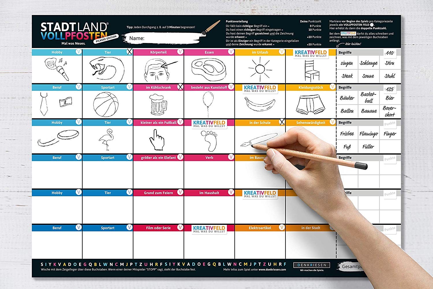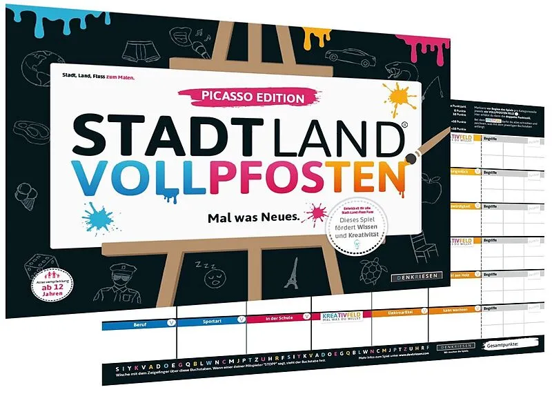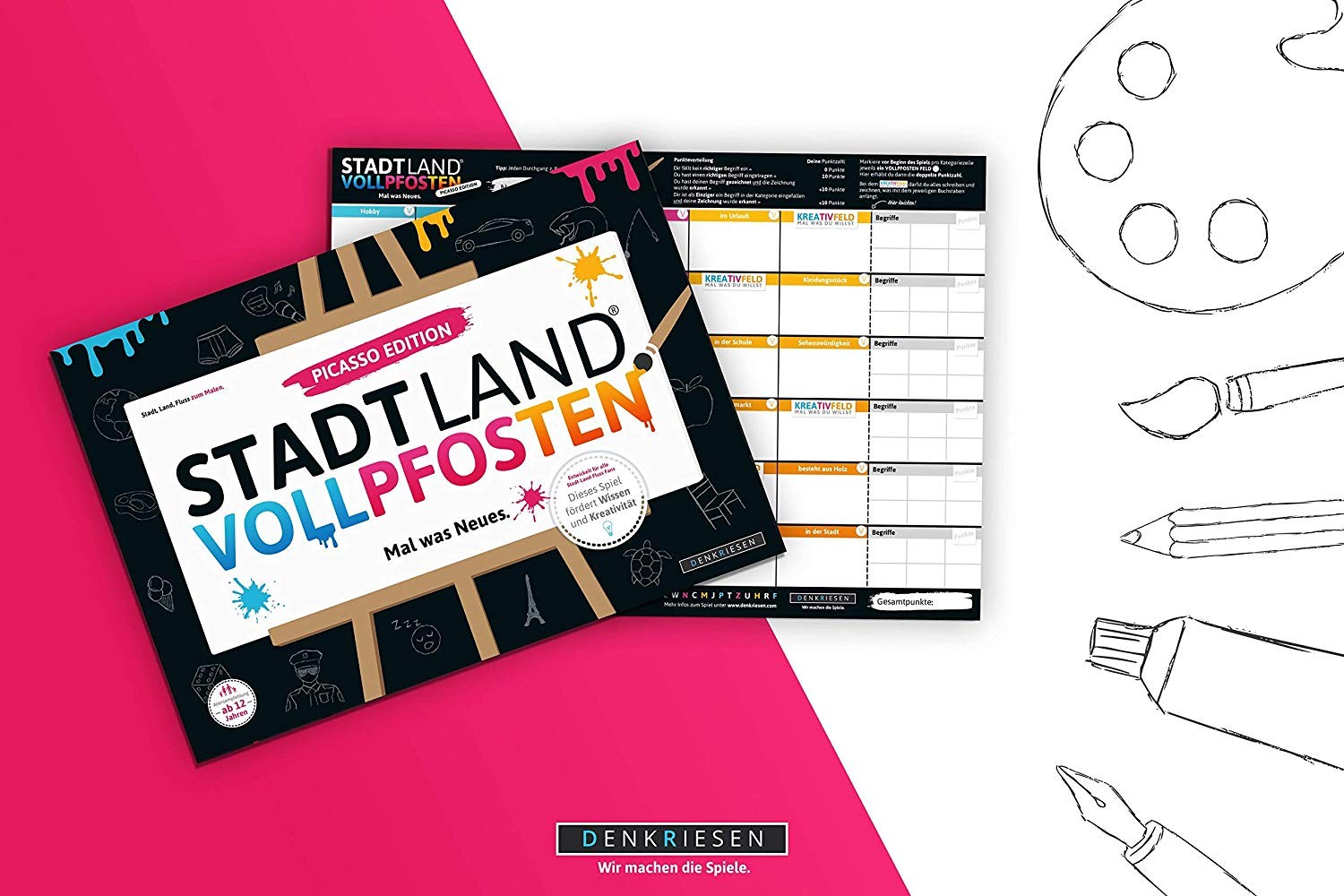 DENKRIESEN - STADT LAND VOLLPFOSTEN® - PICASSO EDITION - Mal was Neues. Die einzigartige und superkreative Erweiterung des Kultspiels Stadt Land Vollpfosten: Die Picasso-Edition! Das Original Stadt, Land, Fluss zum Malen. Stadt Land Vollpfosten: Picasso-Editio...