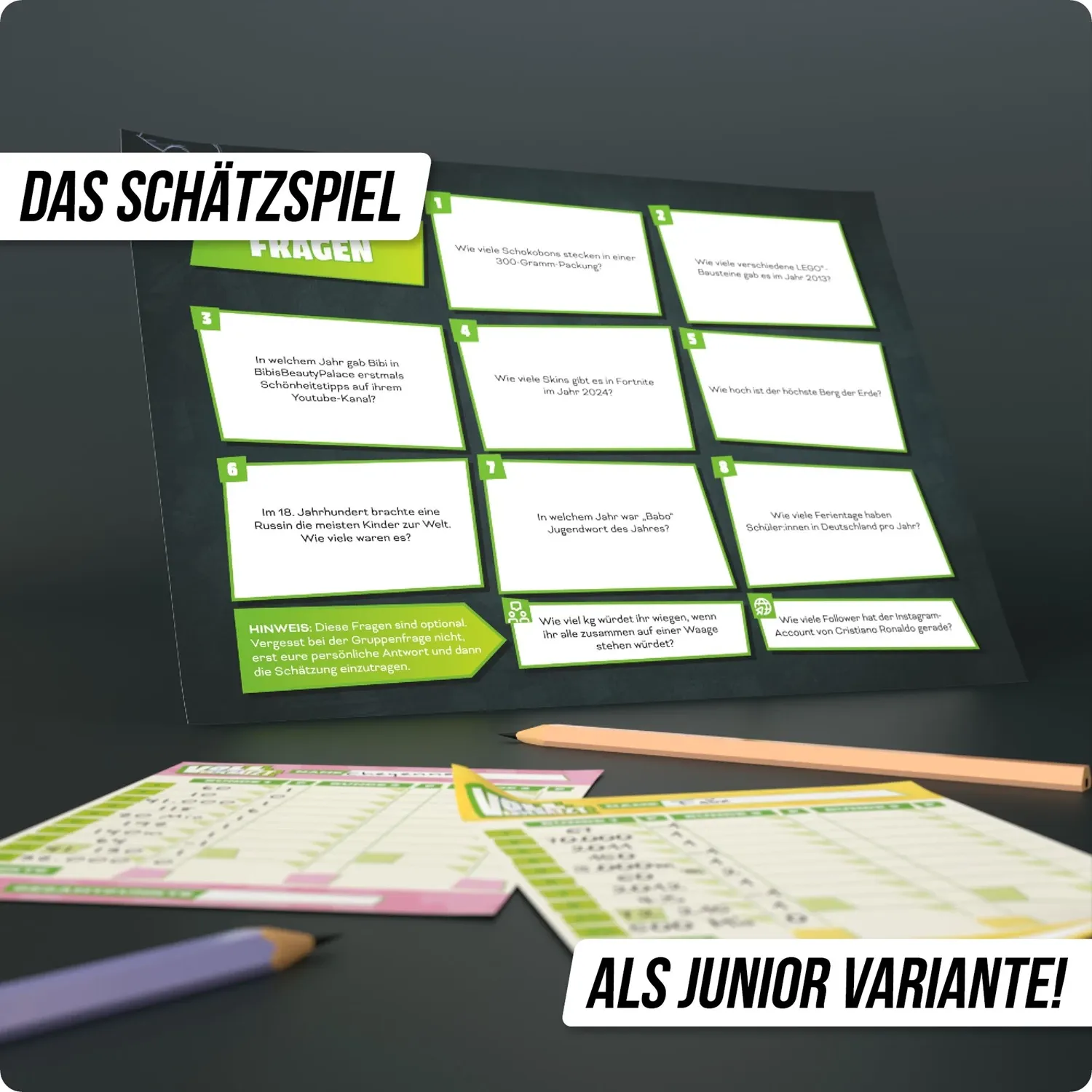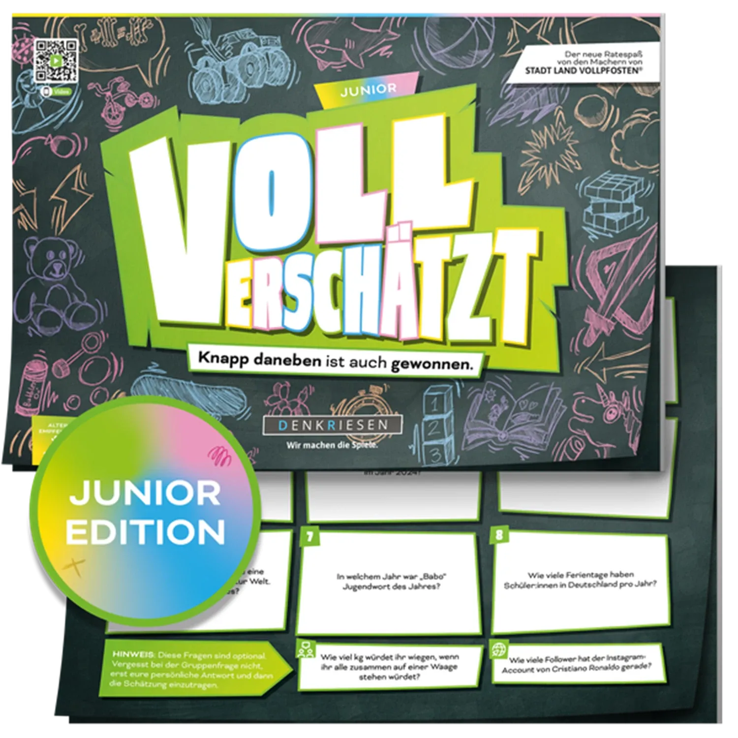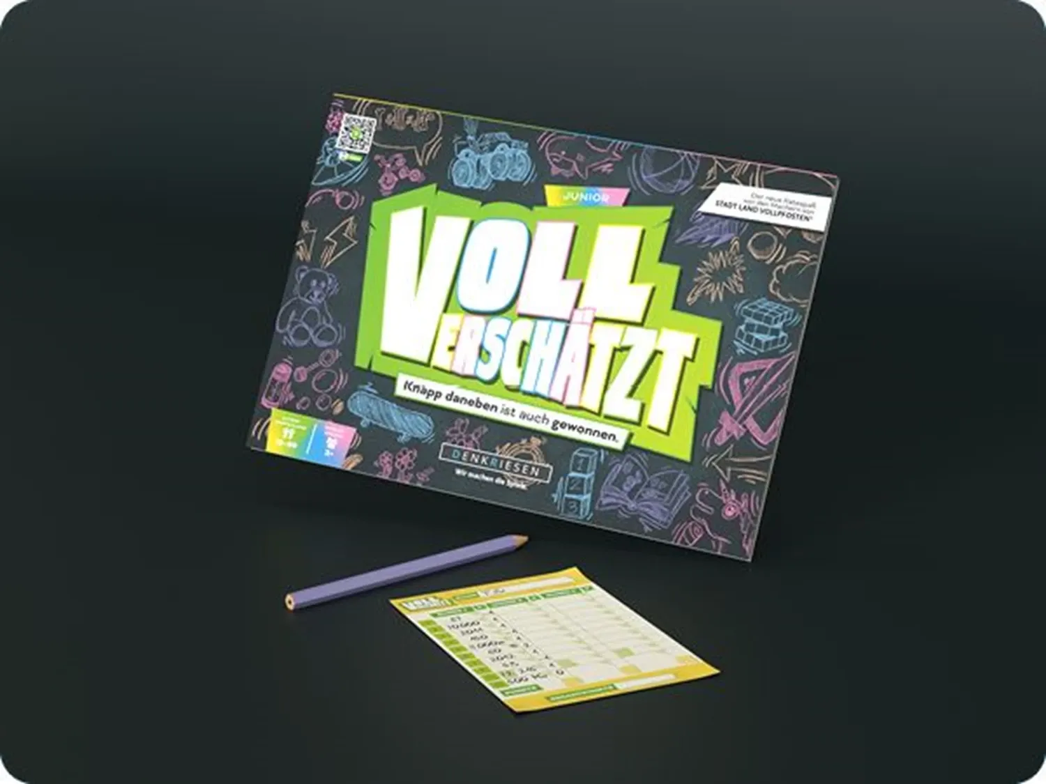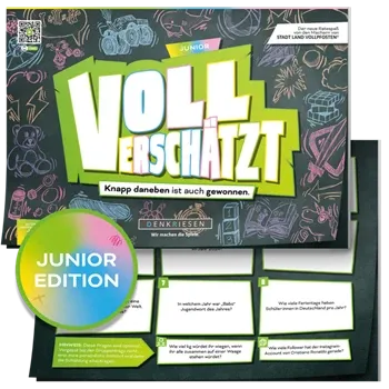 VOLL VERSCHÄTZT! Junior Edition - Knapp daneben ist auch gewonnen Schnapp dir Freunde und Familie und entdeckt die Junior-Welt von VOLL VERSCHÄTZT - dem verrücktesten Schätzspiel aller Zeiten. Hier erwarten dich 350 kunterbunte Fragen aus allen Themenbereichen...
