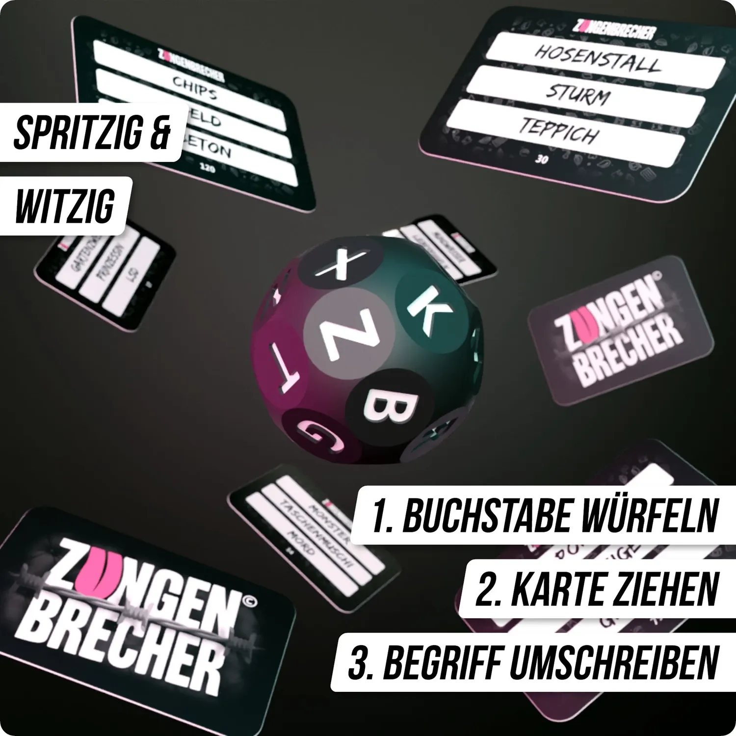 Bei diesem total verrückten Partyspiel geht es darum, pikante Begriffe zu erklären und zu erraten. Doch aufgepasst! Beim Beschreiben muss jedes Wort mit dem erwürfelten Buchstaben beginnen. Kauderwelsch garantiert. Also komm bloß nicht in ´s Stottern!