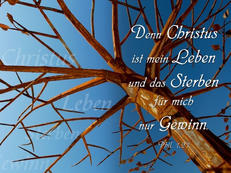 Bei diesem Motiv wurde der Bibelvers aus dem Philipperbrief 1,21, "denn Christus ist mein Leben und das Sterben für mich nur Gewinn", sehr künstlerisch, vom Fotograf HC Bittermann, in Szene gesetzt.