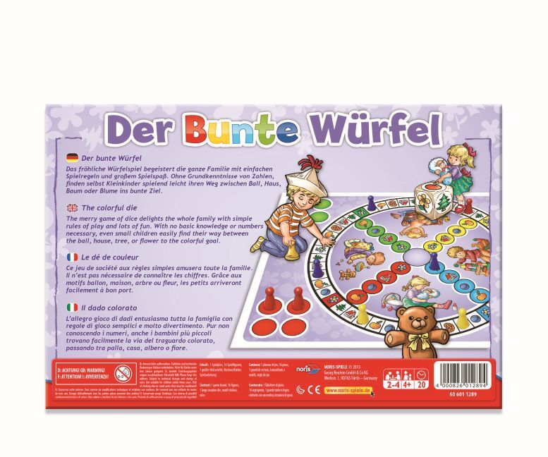Das fröhliche Würfelspiel begeistert die ganze Familie mit einfachen Spielregeln, kindgerechter Gestaltung und großem Spielspaß. Selbst Kleinkinder ohne Grundkenntnisse von Zahlen finden spielend leicht ihren Weg zwischen Ball, Haus, Baum oder Blume ins kunter...