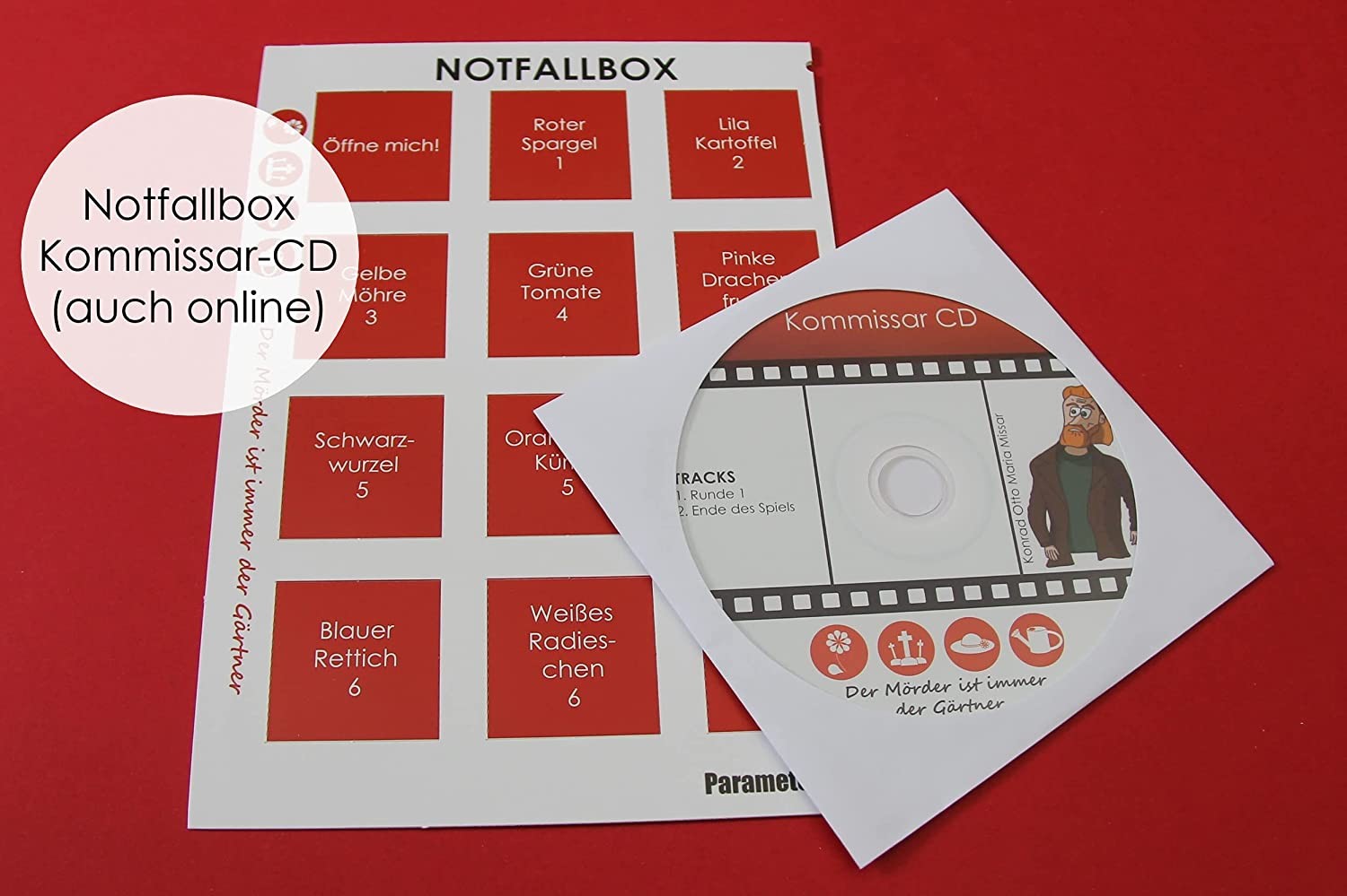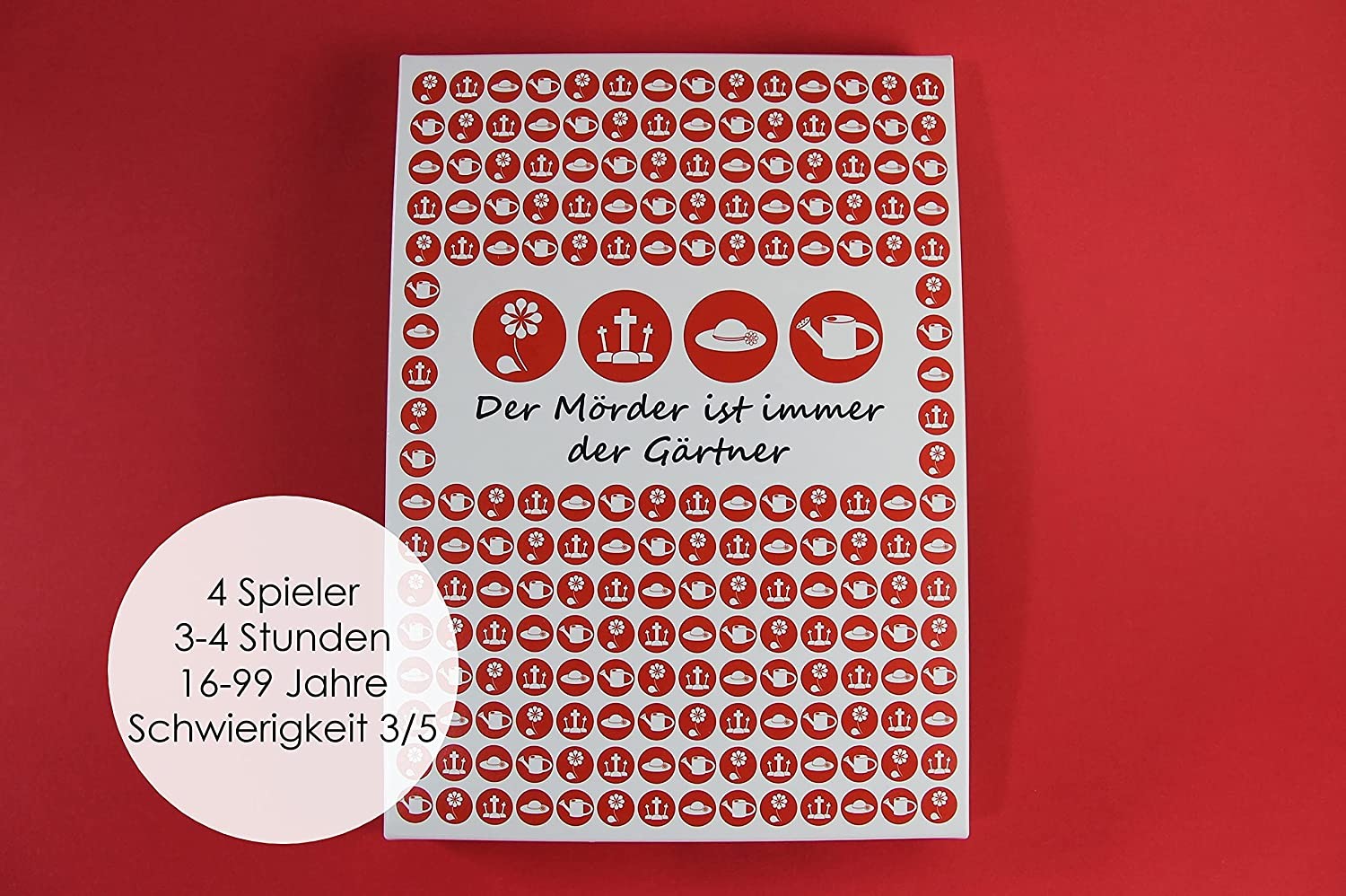 Krimi-Dinner Spiel für Zuhause für 4 Spieler- Der Mörder ist immer der Gärtner. Ein spannendes Detektivspiel inmitten von bunten Blumen und knackigem Gemüse. Der Vorsitzende der Kleingartensiedlung Kleingärtner mit Herz und Seele e.V. wird ermordet aufgefunden...