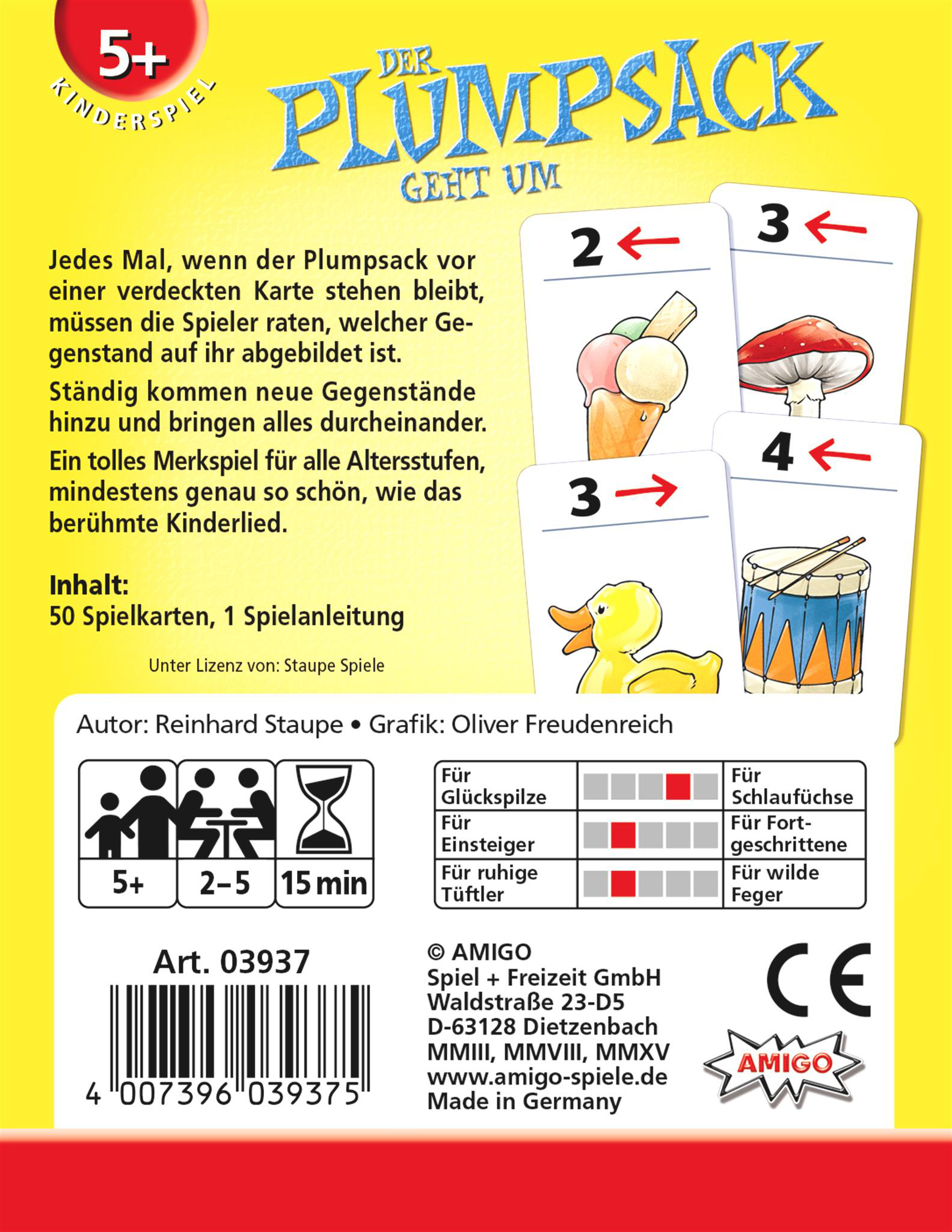 Dreht euch nicht um, der Plumpsack geht um ... Und wenn er plötzlich zu Boden plumpst, sollte man sich gut erinnern können, welcher Gegenstand dort versteckt ist. Leicht ist das nicht, denn nicht nur der Sack wandert munter weiter, auch die Gegenstände ändern ...