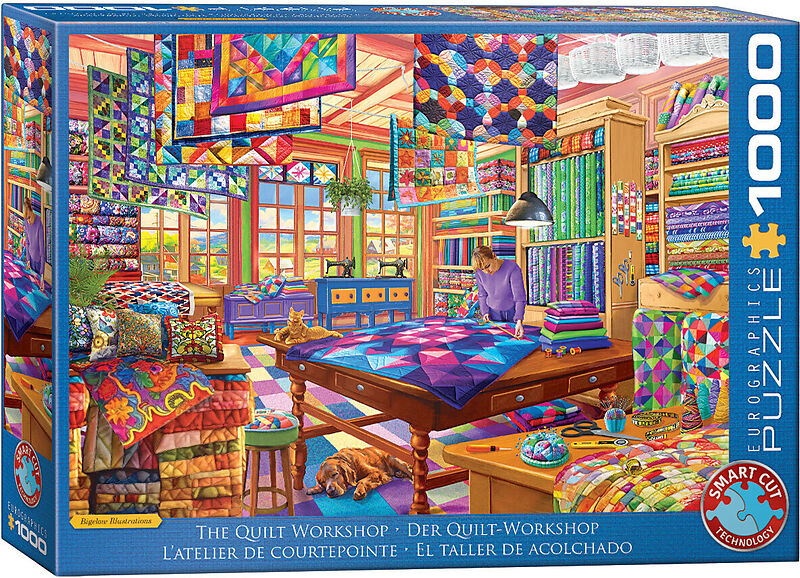 Puzzlemaße: 68 x 48 cm Quilten ist der Begriff für den Prozess der Verbindung von mindestens drei Stoffschichten entweder durch manuelles Nähen mit Nadel und Faden oder mechanisch mit einer Nähmaschine oder einem speziellen Longarm-Quilt-System. Ein Quilt-Shop...