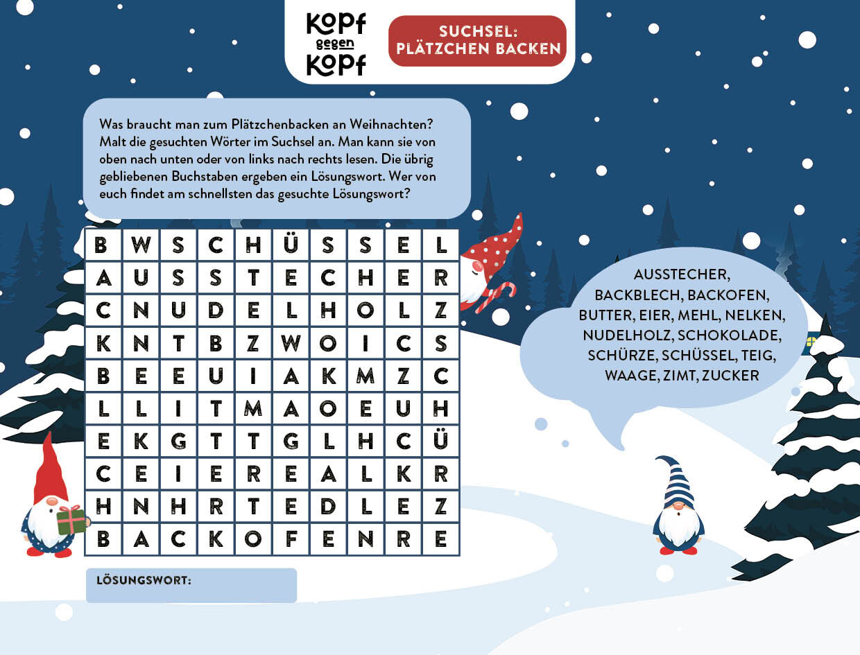 Kopf gegen Kopf - zusammen oder gegeneinander? Egal ob zu Hause oder unterwegs - vier verschiedene Spiele sorgen für jede Menge Spaß: Wer gewinnt bei Welcher Wichtel ist es? und wer findet am schnellsten das richtige Lösungswort im Suchsel? Gemeinsam geht ihr...