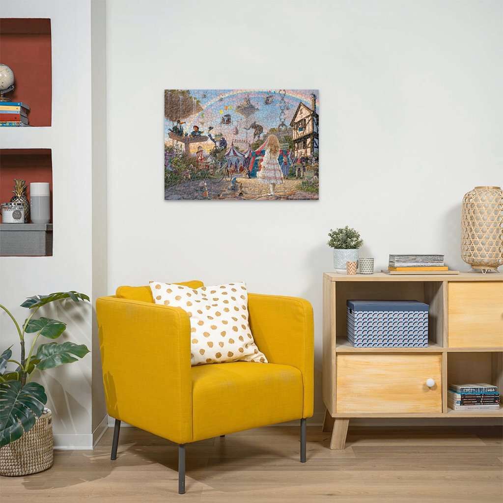 Wie seltsam! Es sieht aus wie auf der Scarborough Fair von früher, aber die Tiere scheinen menschlichere Rollen übernommen zu haben, mit Leo dem Löwen als Zirkusdirektor! Warum fährt der freundliche Frosch auf einem Hochrad, und wer hat das Schloss und die Häu...