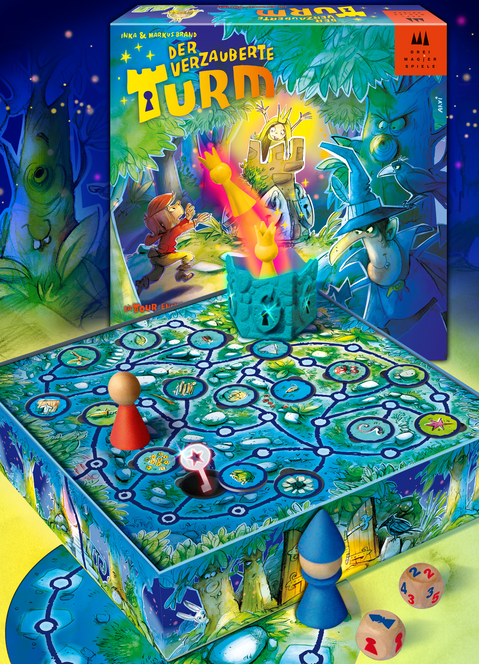 Schmidt Spiele DREI MAGIER SPIELE Der verzauberte Turm - Kinderspiel des Jahres 2013 Hilfe! Die kleine Prinzessin wurde im Turm eingesperrt und der böse Zauberer hat den Schlüssel im Wald versteckt. Die Spieler machen sich schnell auf die Suche. Doch aufgepass...
