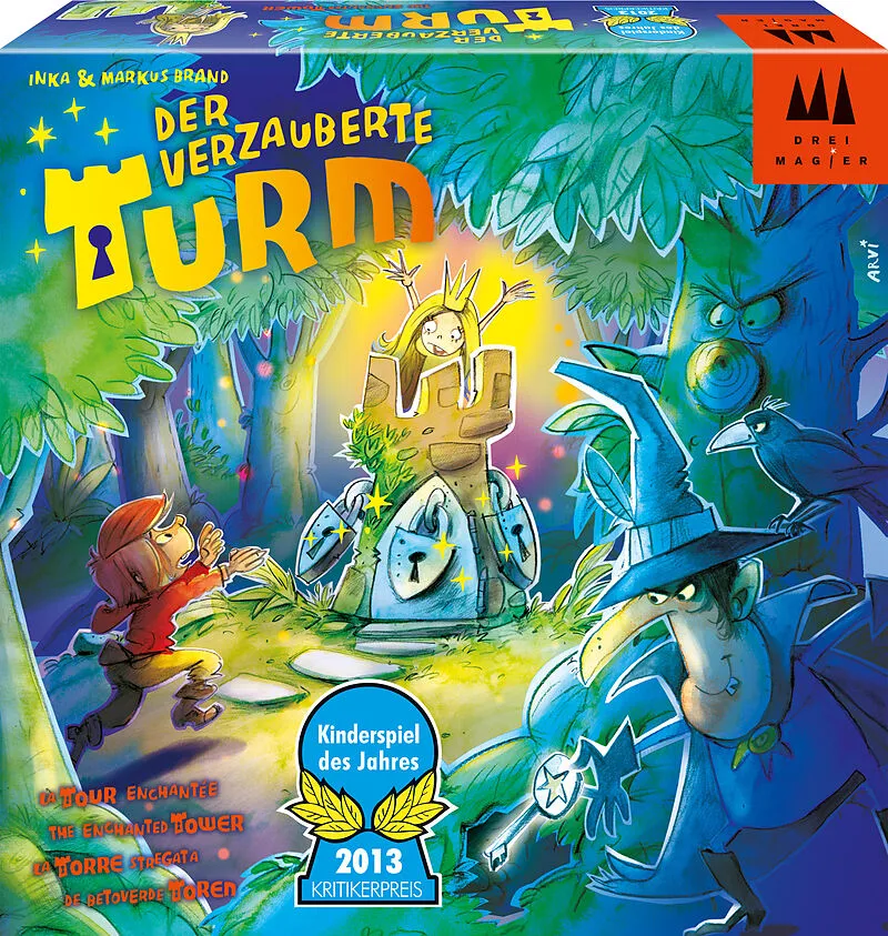Schmidt Spiele DREI MAGIER SPIELE Der verzauberte Turm - Kinderspiel des Jahres 2013 Hilfe! Die kleine Prinzessin wurde im Turm eingesperrt und der böse Zauberer hat den Schlüssel im Wald versteckt. Die Spieler machen sich schnell auf die Suche. Doch aufgepass...