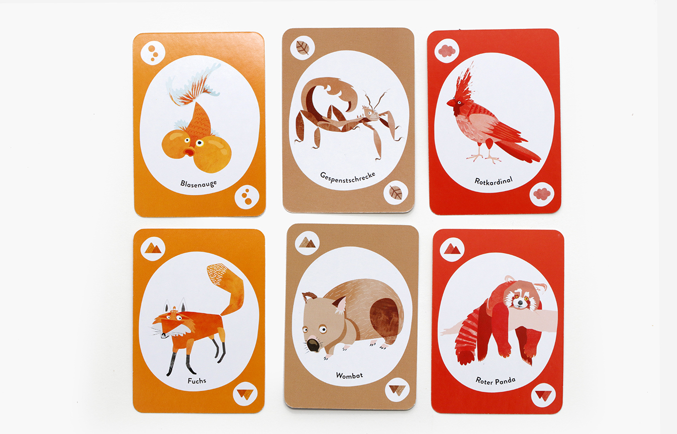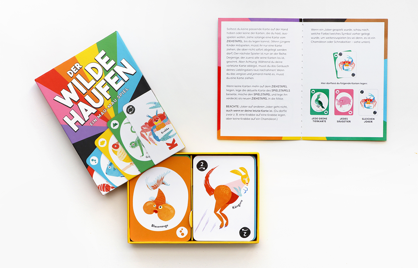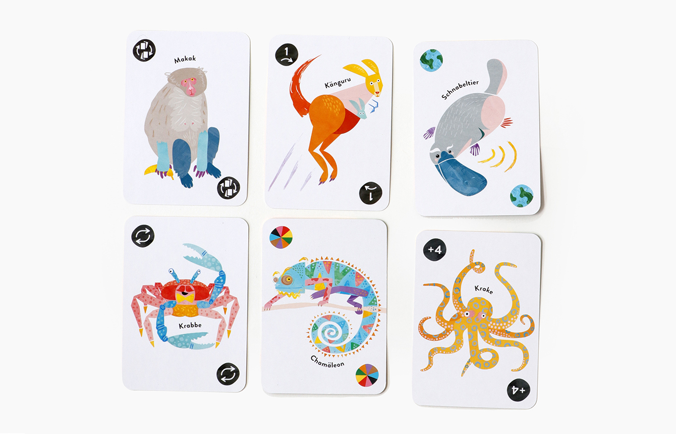 -Spielidee basierend auf dem bekannten UNO-Anstelle von Zahlen mit Tierbildern illustriert-Kindgerechte Illustrationen vermitteln Kindern die verschiedenen Unterarten der Säuger, Vögel, Insekten und Fische Bei diesem auf der Idee von UNO basierenden Kartenspie...