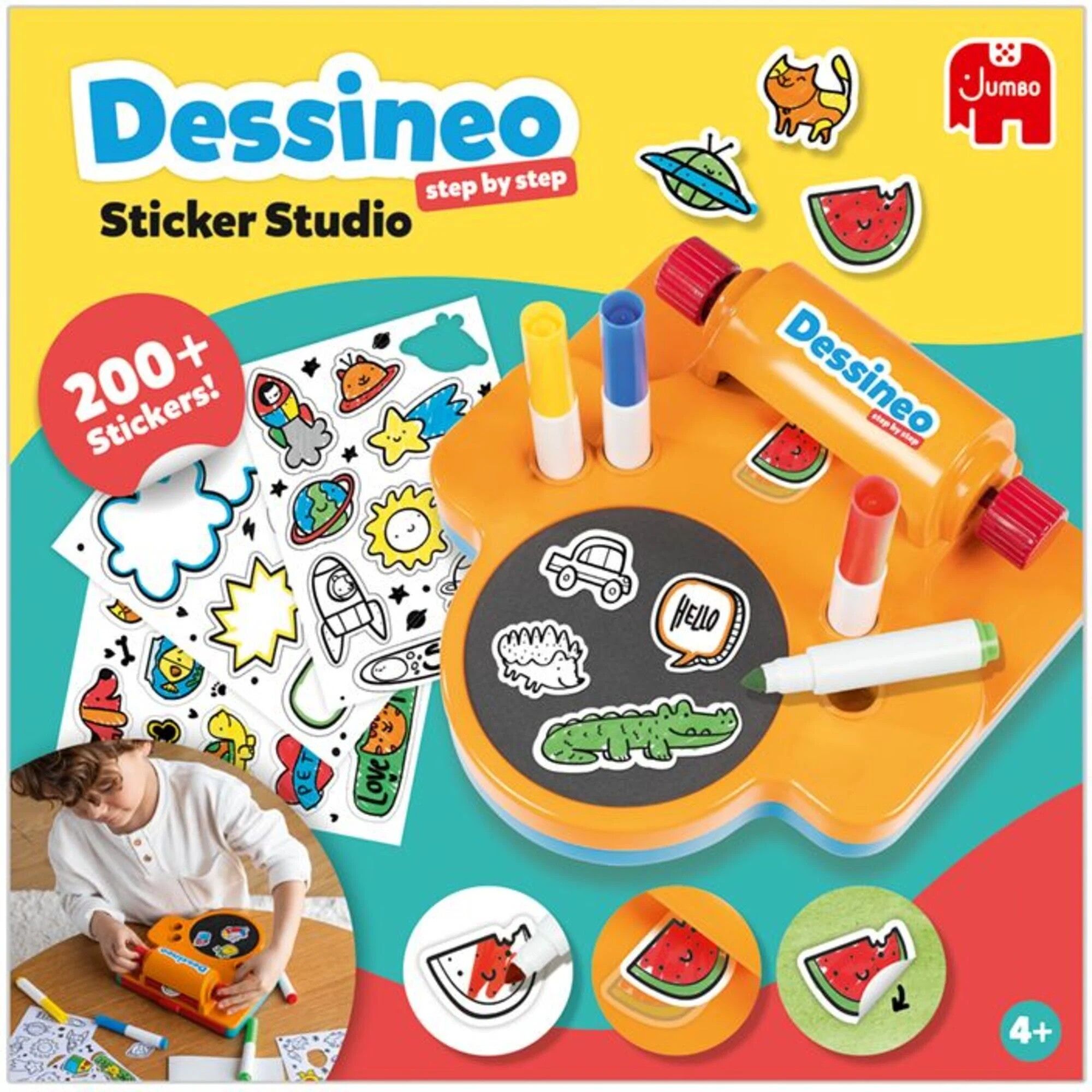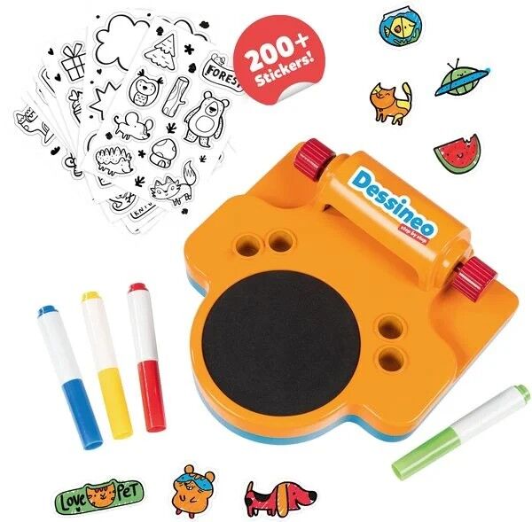 Mit diesem neuen Dessineo lernen Kinder Schritt für Schritt, ihre eigenen Aufkleber zu basteln! Wähle einen Aufkleber, male ihn aus und sorge dafür, dass er klebt, indem du ihn durch das Gerät rollst. Warnhinweis: Achtung: Verpackung mit Herstelleranschrift bi...