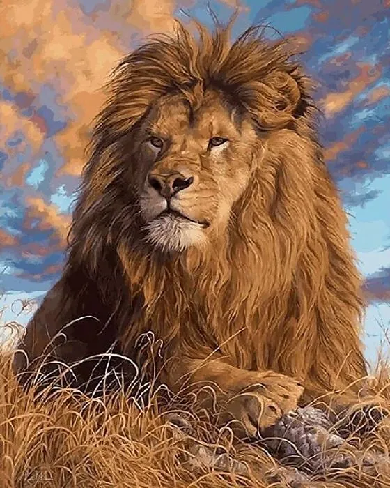 Dieses brandneue Diamond Painting-Bild ist 40 x 30 cm groß und zeigt einen majestätischen Löwen. Das praktische Set enthält alle nötigen Materialien und eine Anleitung.