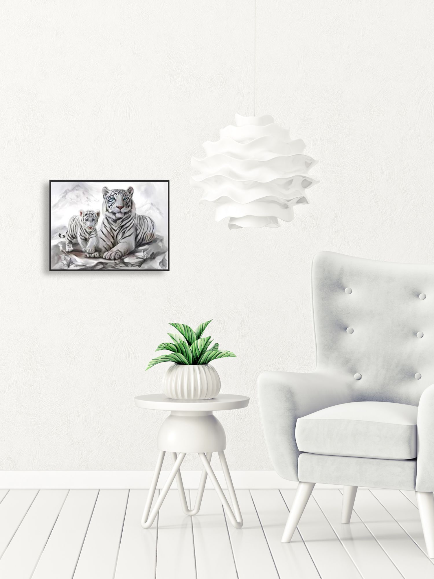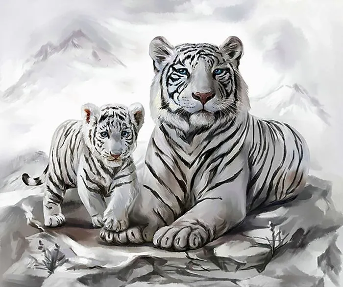 Diamond Painting Weiße Tigermama mit Jungtier 40x30 cm Dieses funkelnde Diamond Painting-Bild ist 40 x 30 cm groß und zeigt eine stolze weiße Tigermama mit ihrem niedlichen Nachwuchs. Das praktische Set enthält alle nötigen Materialien und eine Anleitung für s...