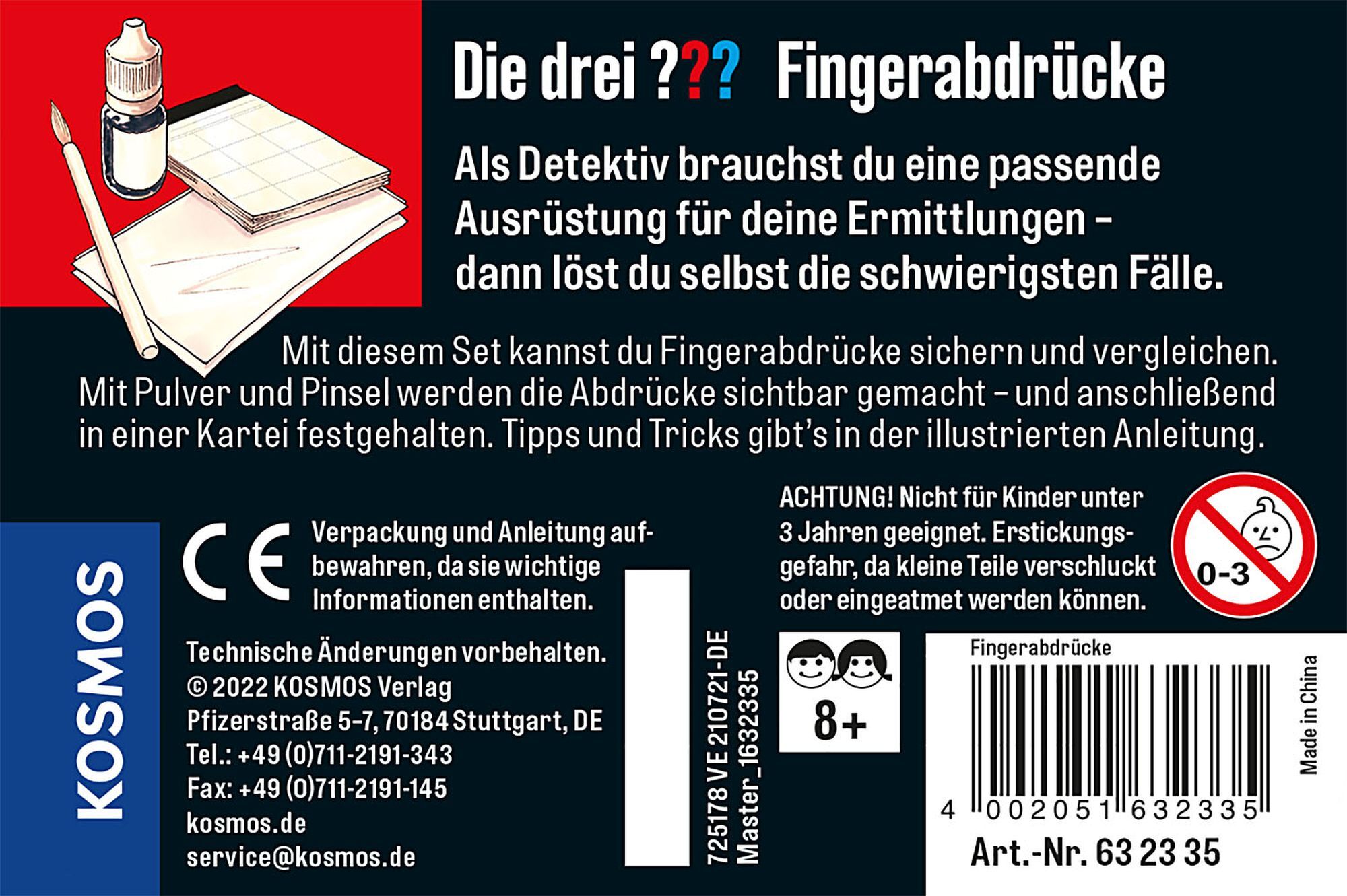 Wer könnte die Täterin oder der Täter gewesen sein? Dieses Detektiv Set hilft Kindern beim Aufspüren unsichtbarer Fingerabdrücke. Mit Fingerabdruckpulver ausgestattet machen sie sich an die Untersuchung des Tatorts und sichern die Beweise.27 Kunden haben diesen Artikel kürzlich gekauft.