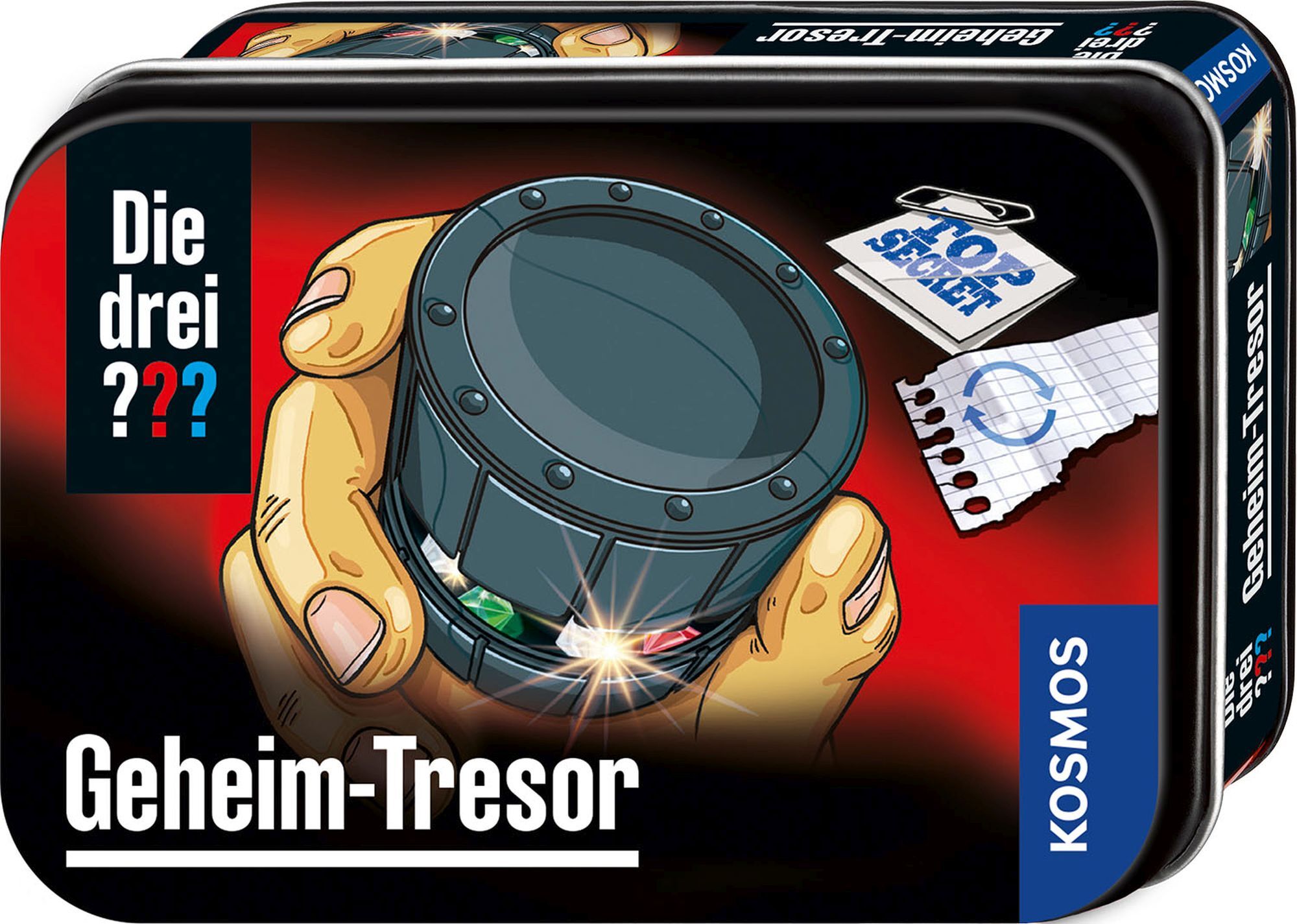 Wer schafft es den Geheim-Tresor zu knacken? Nur durch einen speziellen Trick lässt sich das Geheimfach im Inneren öffnen und offenbart dann verborgene Schätze ... Zugriff nur für Eingeweihte! Geheim-Tresor mit raffiniertem Verschluss und Geheimfach, farbig il...