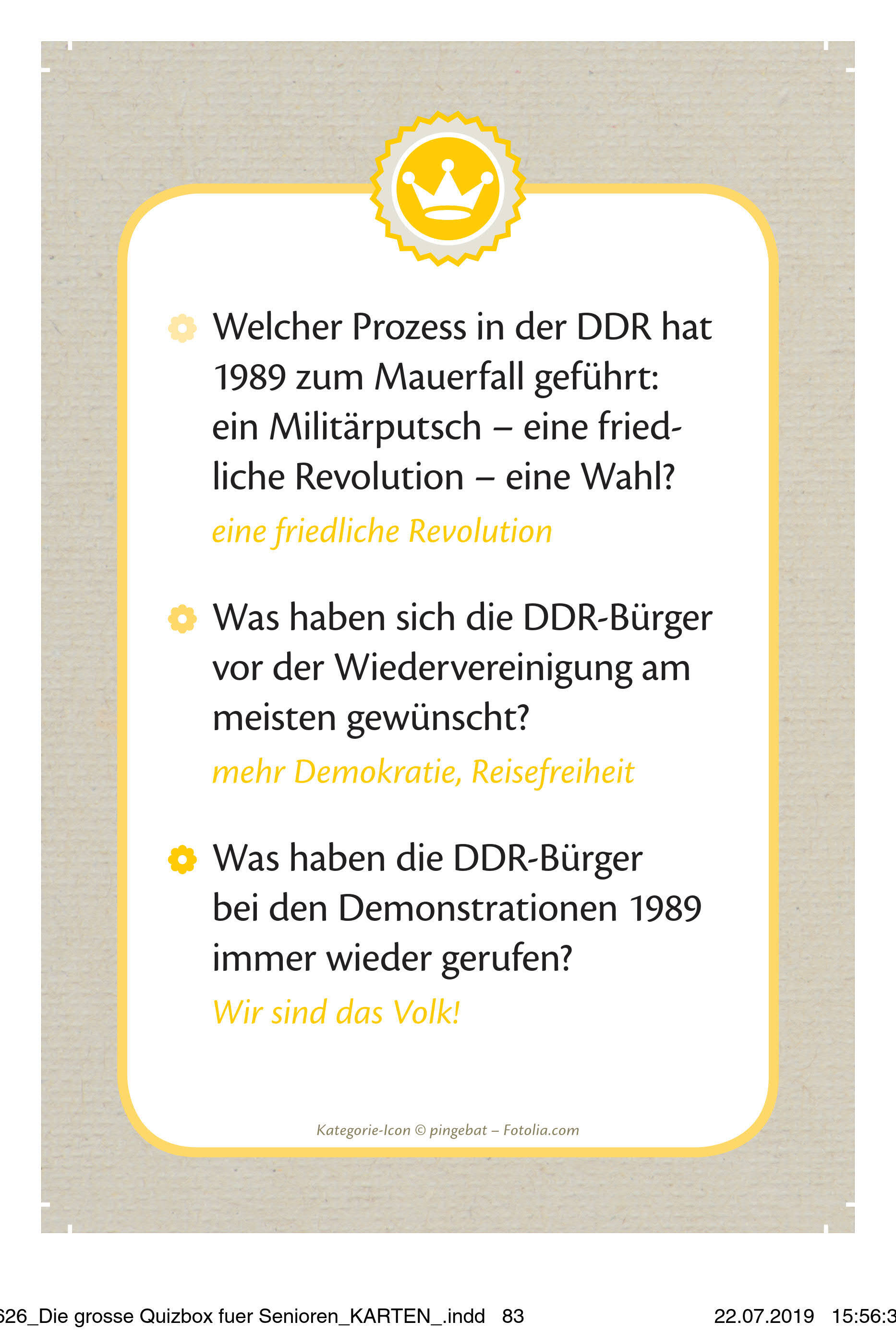 Quizspiel zur Aktivierung und Beschäftigung für Senioren, für Fachkräfte in Altenpflege und Seniorenarbeit sowie für pflegende Angehörige zu Hause +++ Wie hieß die heitere Berufe-Rateshow mit Robert Lembke als Moderator im ARD-Fernsehen? Richtig: "Was bin...