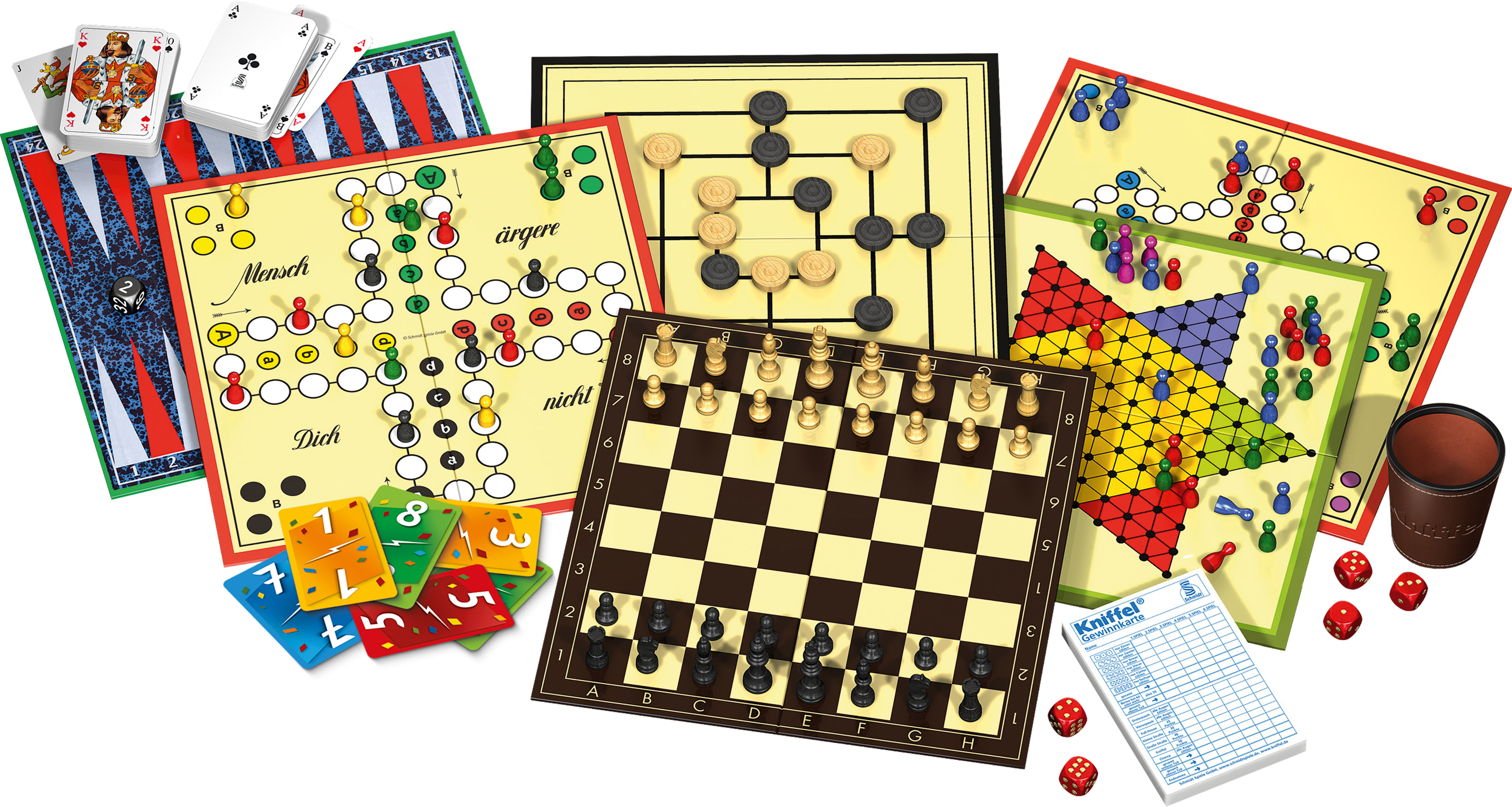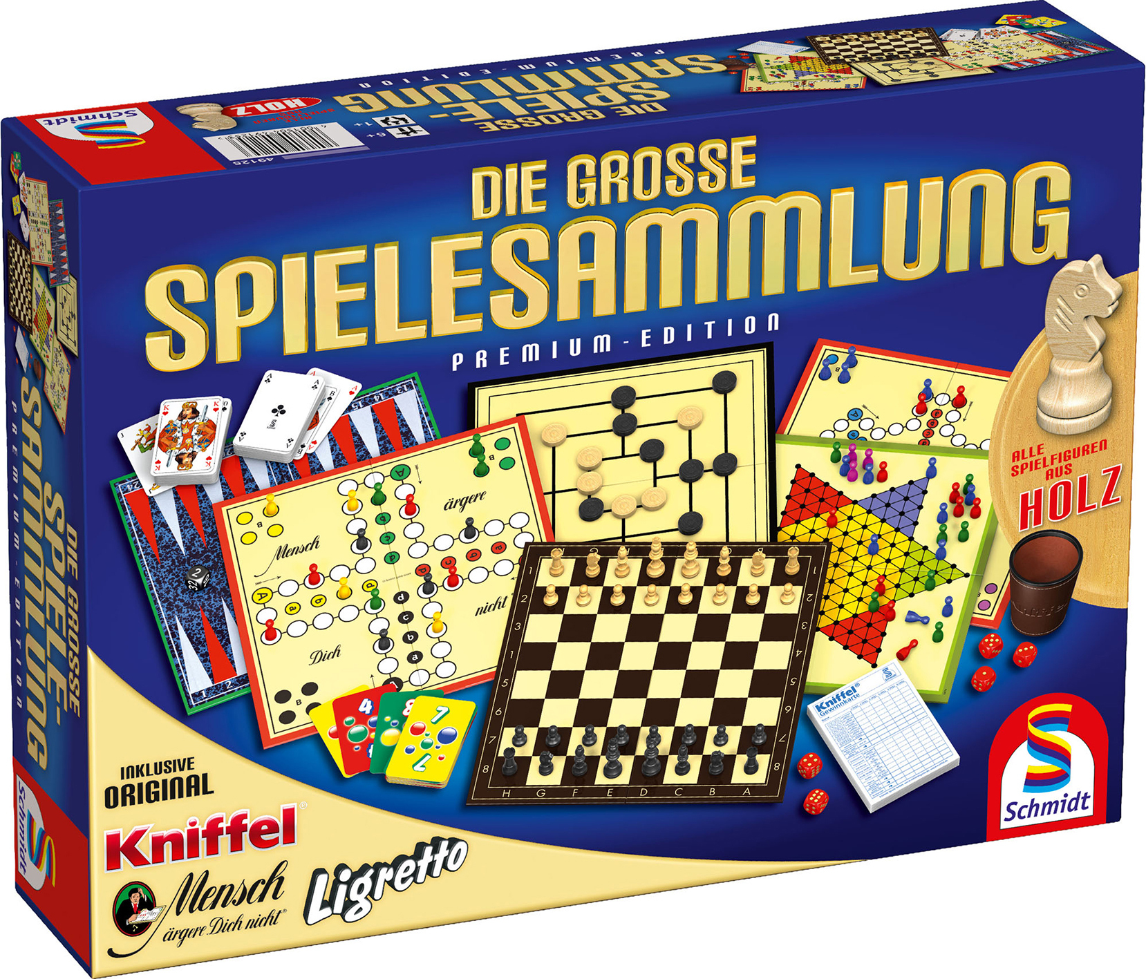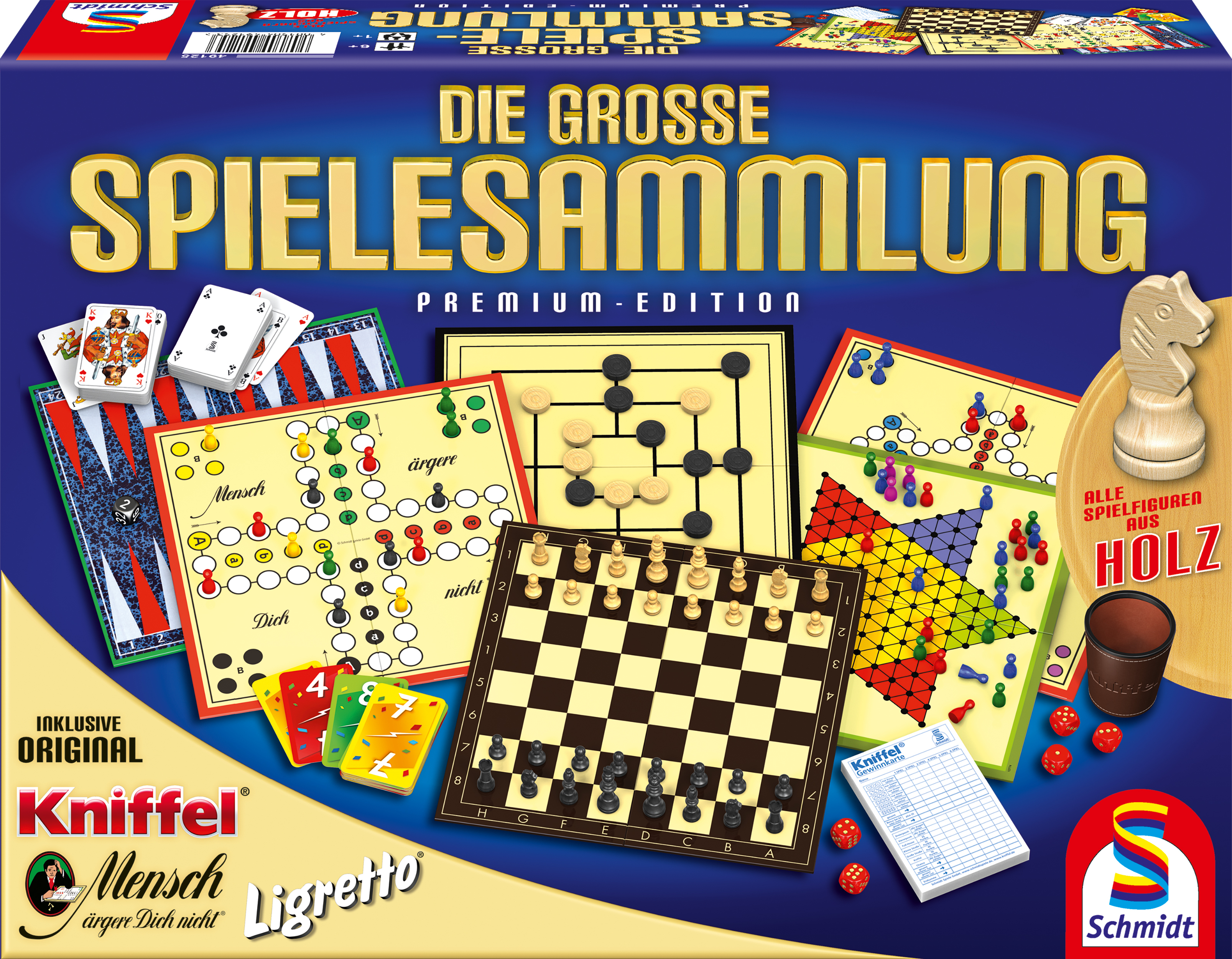 Die große Spielesammlung Diese Premium-Edition mit über 100 raffinierten Spielemöglichkeiten enthält neben dem original MENSCH ÄRGERE DICH NICHT und KNIFFEL unser beliebtes LIGRETTO-Kartenspiel und viele weitere populäre Spiele wie Backgammon, Rommé und Halma....