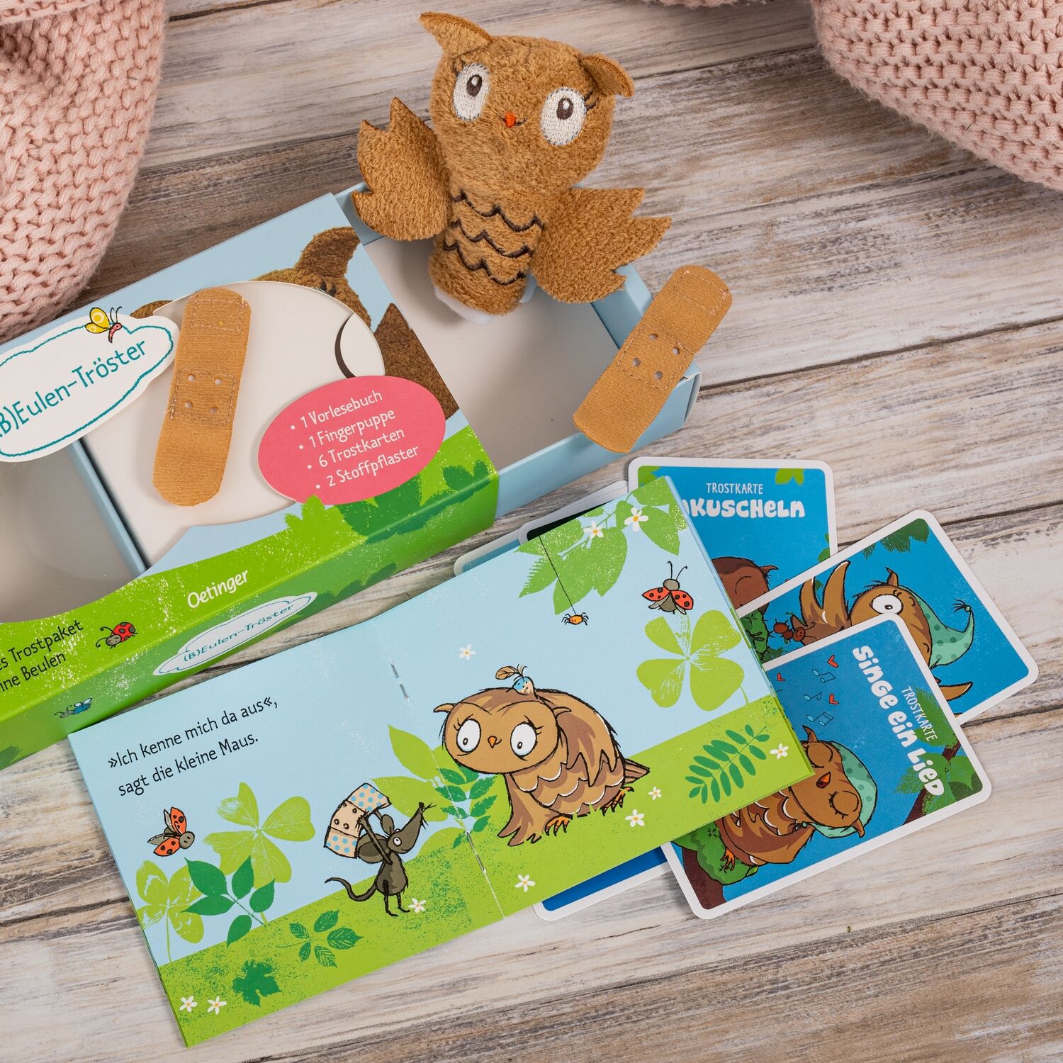 Da tut es gleich gar nicht mehr weh: Niedliches Trost-Set mit 10 Teilen und allem, was es braucht um die Wehwehchen des Alltags zu überwinden. Die Trostkarten bieten Ideen, Vorschläge und Inspirationen, die Kindertränen ganz schnell wieder verschwinden lassen...