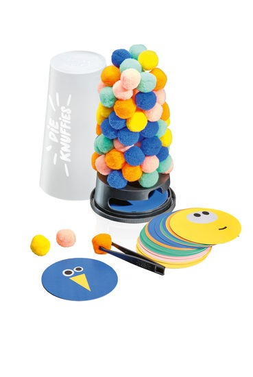 Schmidt Spiele 49395 Die Knuffies Das bunte Partyspiel für Jung und Alt: Federleicht aber schwer begeisternd! Fischt die lustigen Bällchen je nach Farbvorgabe geschickt aus dem Turm heraus und setzt sie weiter oben wieder ein. So entstehen die skurrilsten, unm...