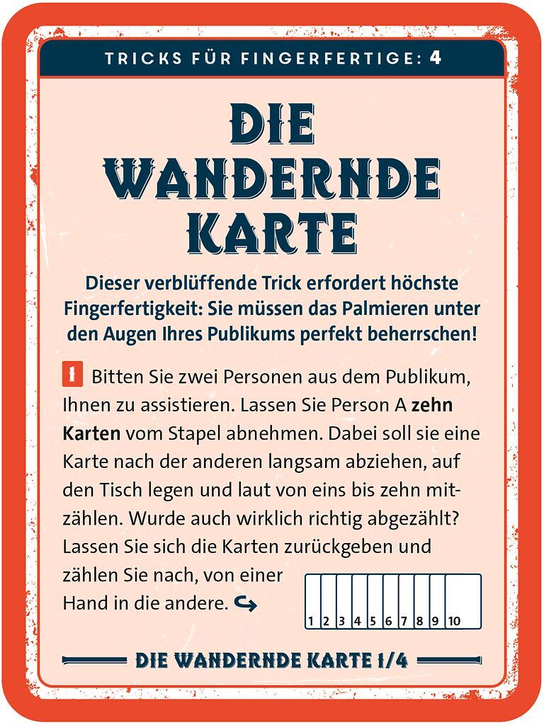 Die Welt der Kartentricks - Leichtgemacht!Mit diesen 33 Kartentricks kann man seine Gäste, Familie und Freunde zum Staunen bringen. Die leichtverständlichen Anleitungskarten zeigen die verschiedensten Tricks und Kniffe, die es benötigt faszinierende Kunststück...