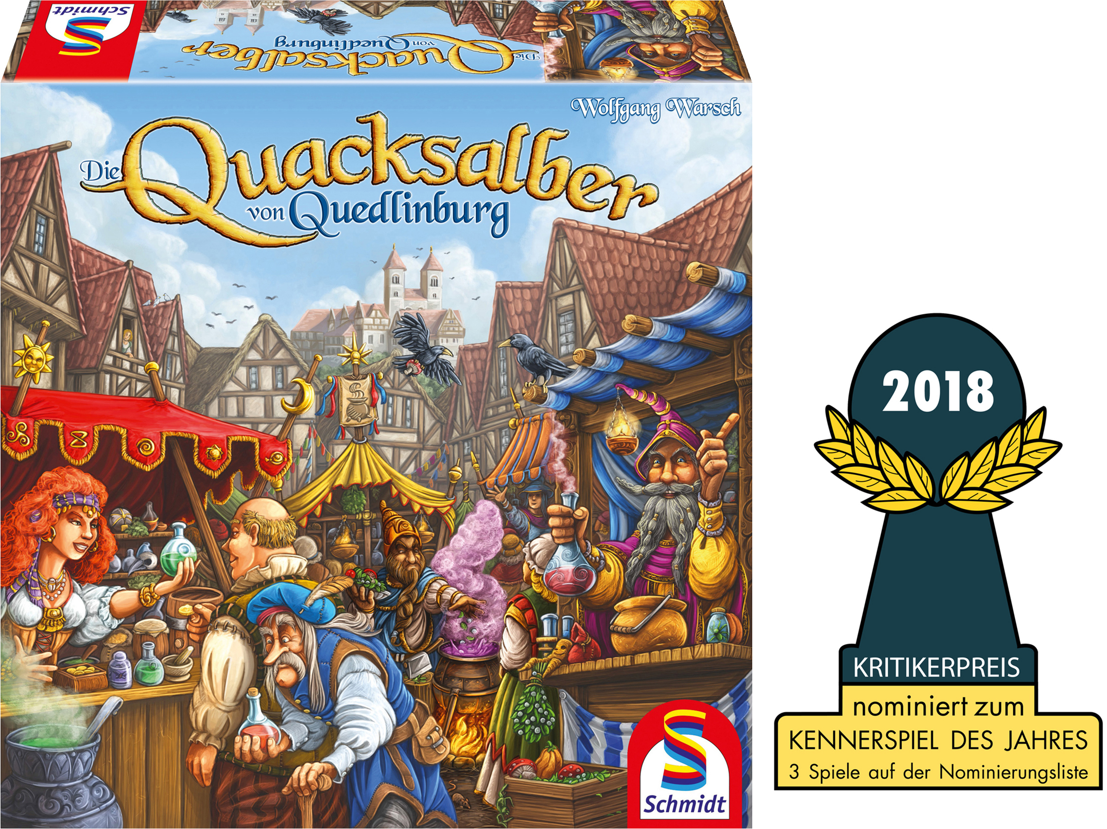 Schmidt Spiele Die Quacksalber von Quedlinburg Kennerspiel des Jahres 2018 Jeder der bis zu vier mitspielenden Quacksalber kocht hier sein eigenes Süppchen. Zutat um Zutat wird hierfür aus dem eigenen, im Laufe des Spiels selbst zusammengestellten Vorratsbeute...