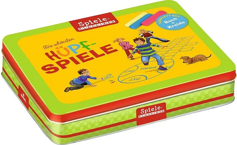 In der Hüpfspiele-Box finden sich neben den Klassikern auch schnelle Spiele, Teamspiele und Spiele mit Buchstaben oder Zahlen. Mit einer Spielfeldskizze, lustigen Illustrationen und einer Anleitung werden die Regeln anschaulich erklärt. Drei Straßenmalkreiden ...