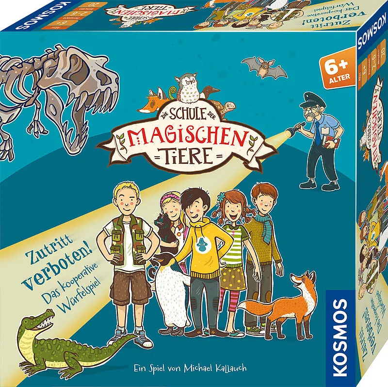 Kooperatives Würfel-Einsetz-Spiel in der Welt von Die Schule der magischen Tiere. Geheime Mission im Museum! Ida, Benni, Anna-Lena und Jo sind mit ihren magischen Tieren nachts im Museum unterwegs. Sie wollen Silas helfen, das große Dino-Skelett wiederaufzubau...