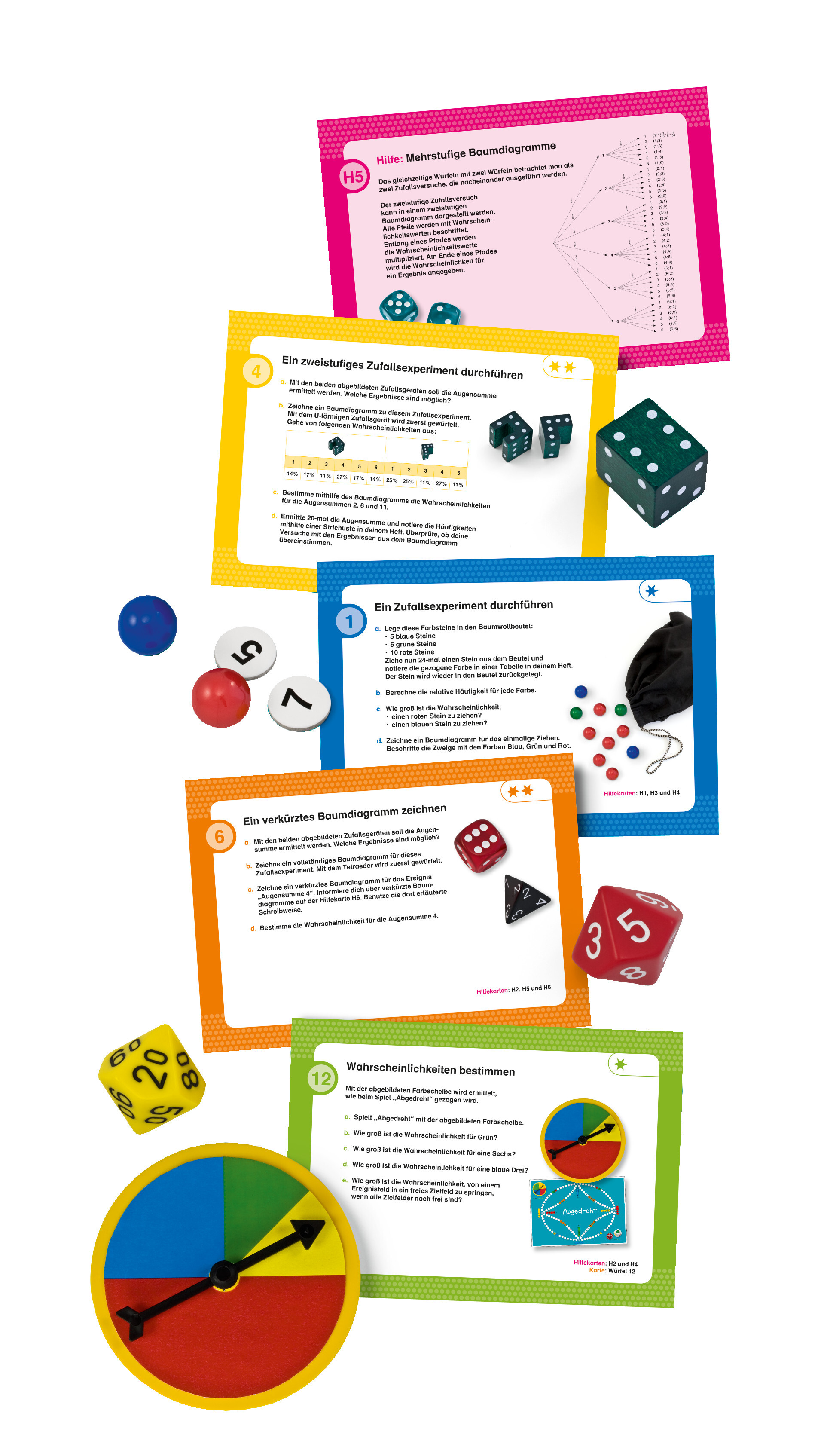 Die Wahrscheinlichkeits-Box enthält umfangreiches Übungsmaterial zu allen grundlegenden Inhalten der Wahrscheinlichkeitsrechnung und lädt Schülerinnen und Schüler zum selbstständigen Entdecken und Experimentieren ein. Auf einen Blick: Wahrscheinlichkeitsrechn...