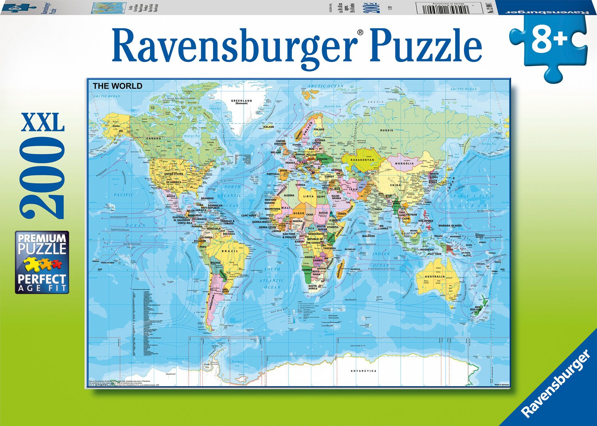 Ravensburger 12890 Puzzle Die Welt 200 Teile XXL Altersgerechter Puzzlespaß im XXL-Format: Ein Tauchgang in bunte Unterwasserwelten, eine Zeitreise ins Land der Dinosaurier, eine Entdeckungstour in die Heimat von Tiger, Elefant & Co, oder ein zauberhaftes Aben...