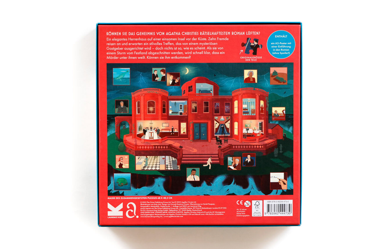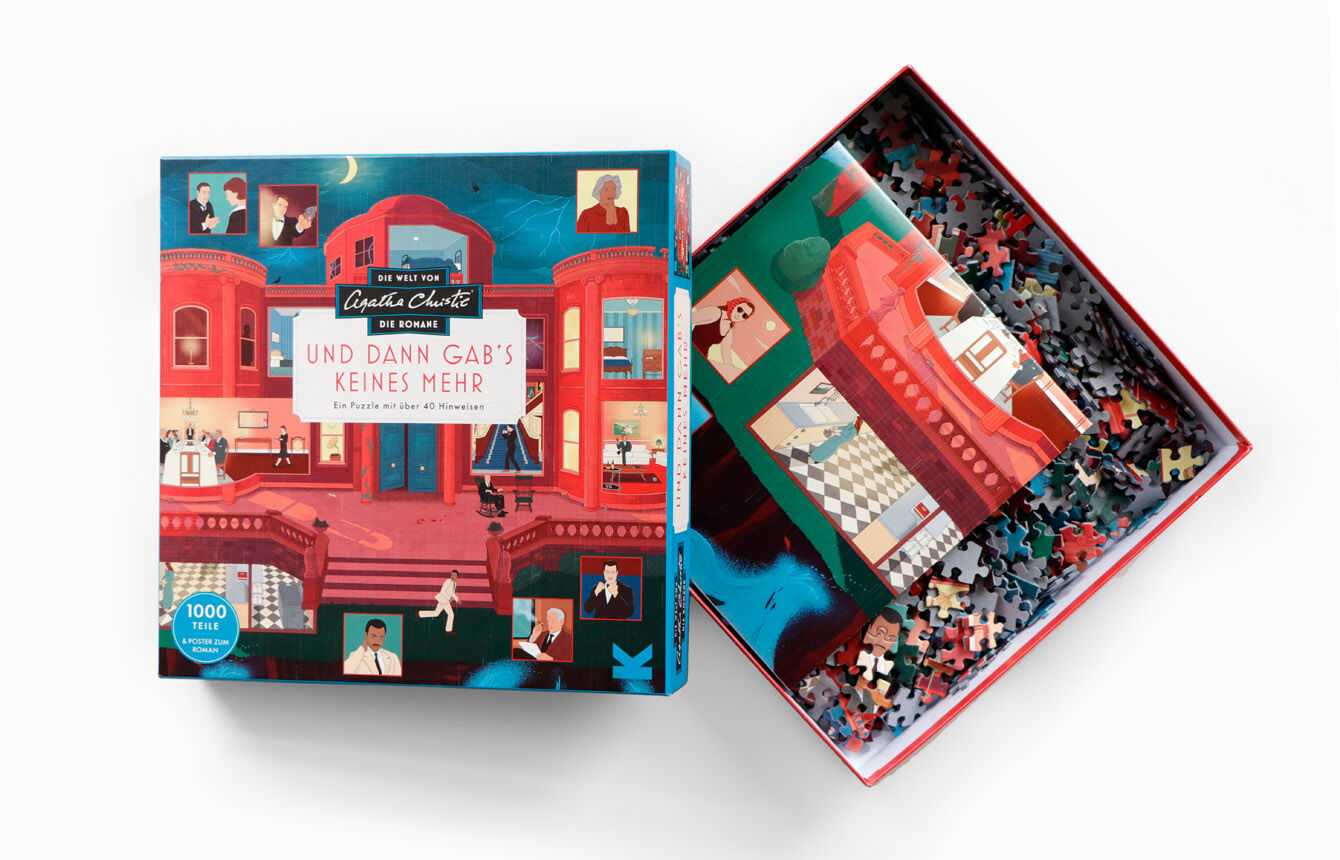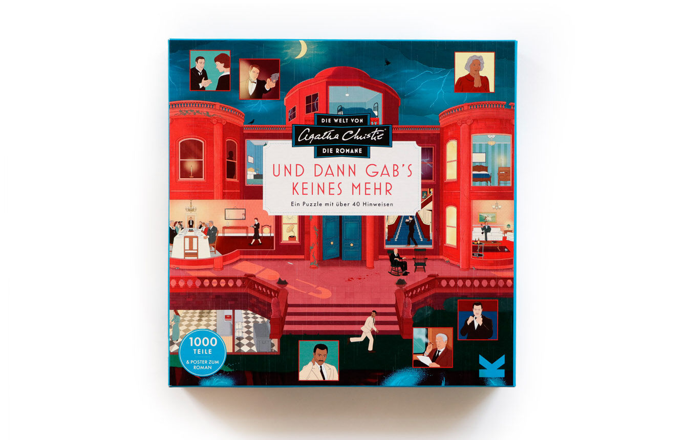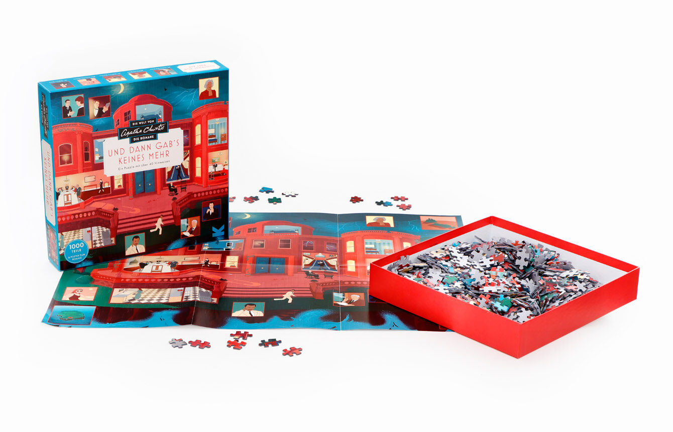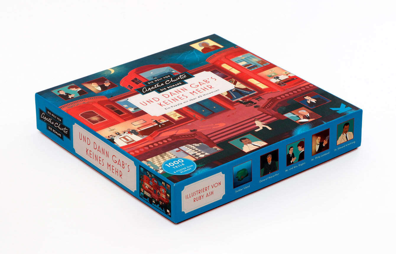 Neuester Titel unserer erfolgreichen Agatha Christie Puzzles > 1000-Teile-Puzzle mit Figuren und Szenen aus Christies Roman Und dann gab's keines mehr > A2-Poster mit Erläuterungen und versteckten Hinweisen Und dann gab's keines mehr machte Agatha ...