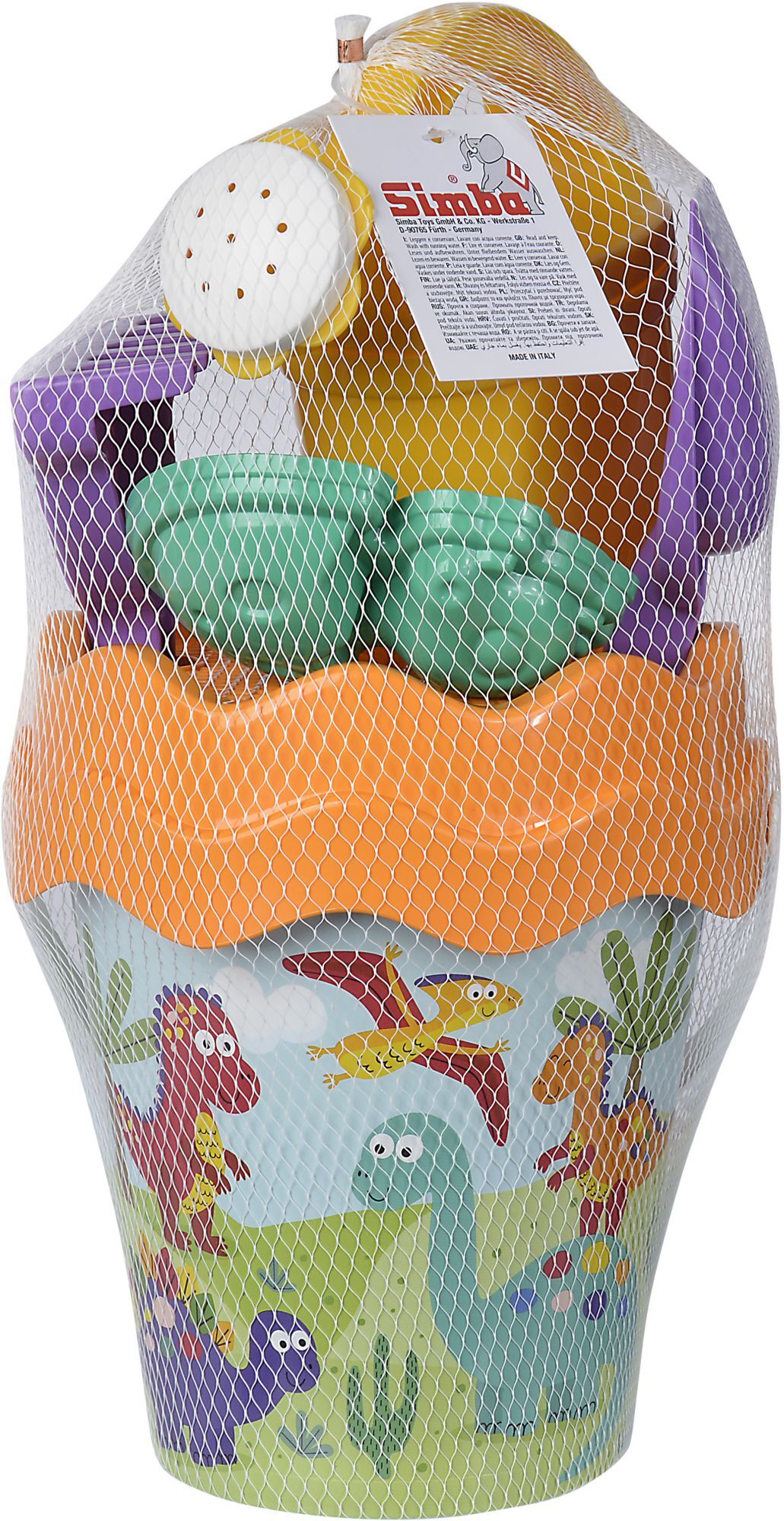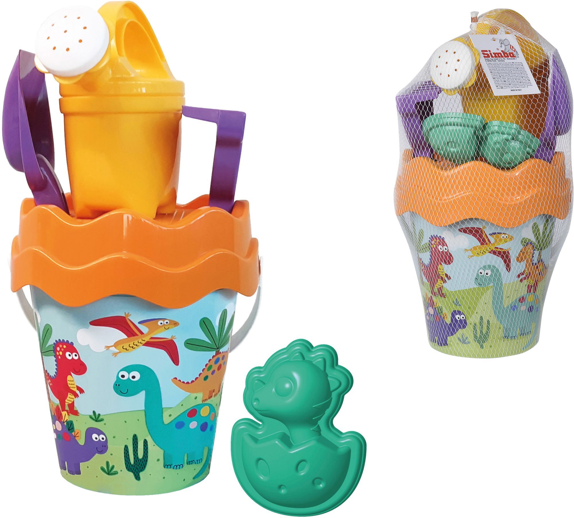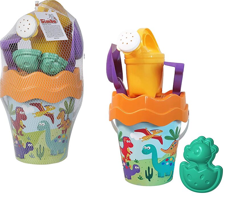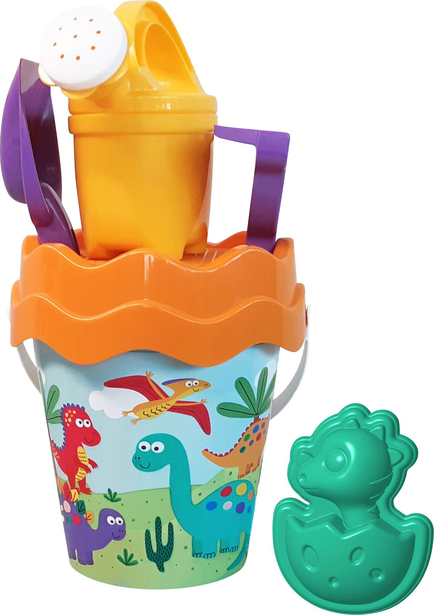 Dino Eimergarnitur 6-tlg., Eimer, Sieb, Sandform, Schaufel, Rechen, Gießer, H:16cm, D:17cm, NTZ, EAN-H