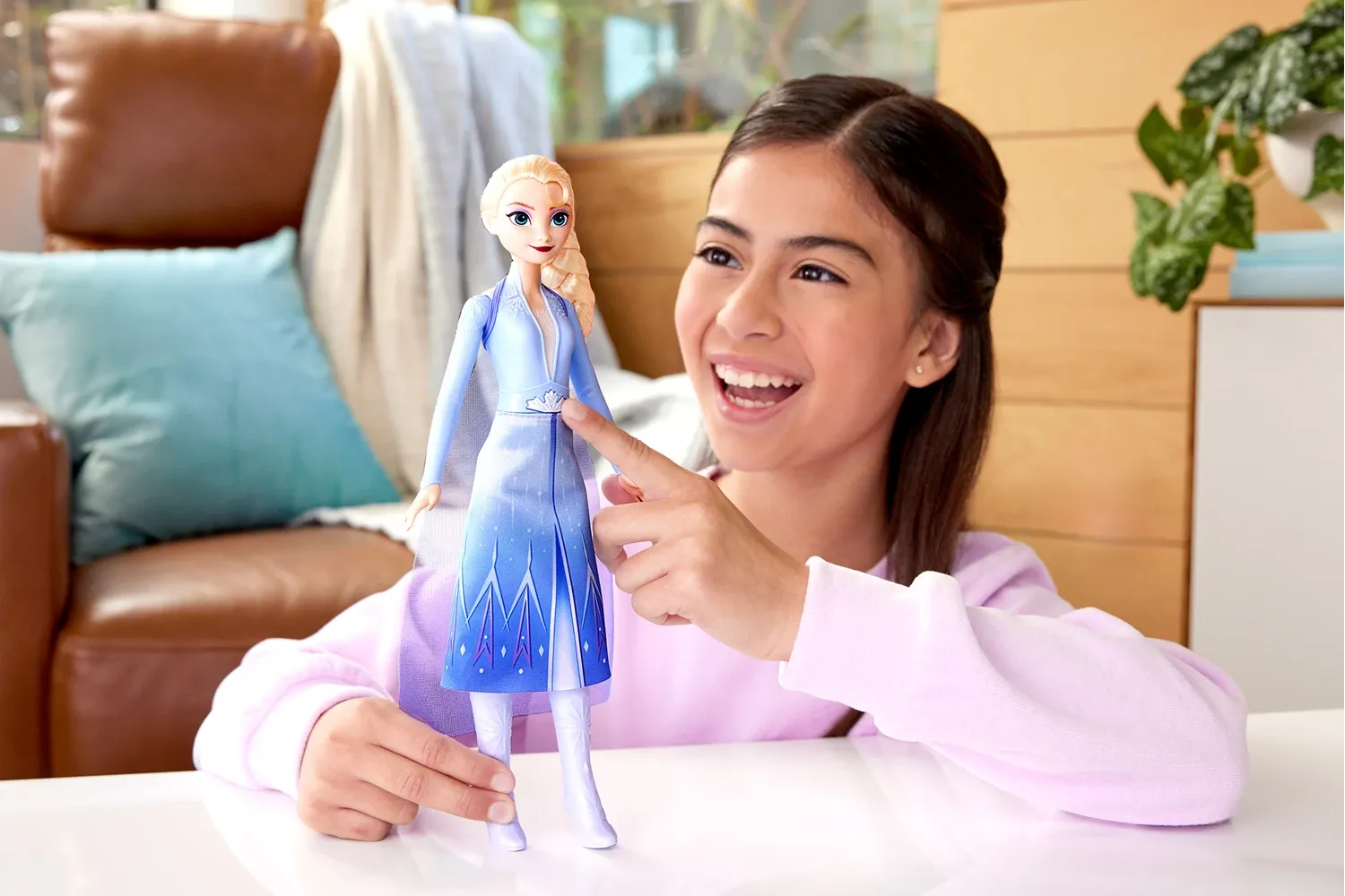 Disney Die Eiskönigin Singende Elsa-Puppe, die Wo noch niemand war aus dem Film in 4 Sprachen singt Die von der Zeichentrickfigur aus dem Disney-Film Die Eiskönigin II inspirierte Elsa-Puppe steckt voller Mut und Zuversicht, zu entdecken, wer sie wirklich sein...