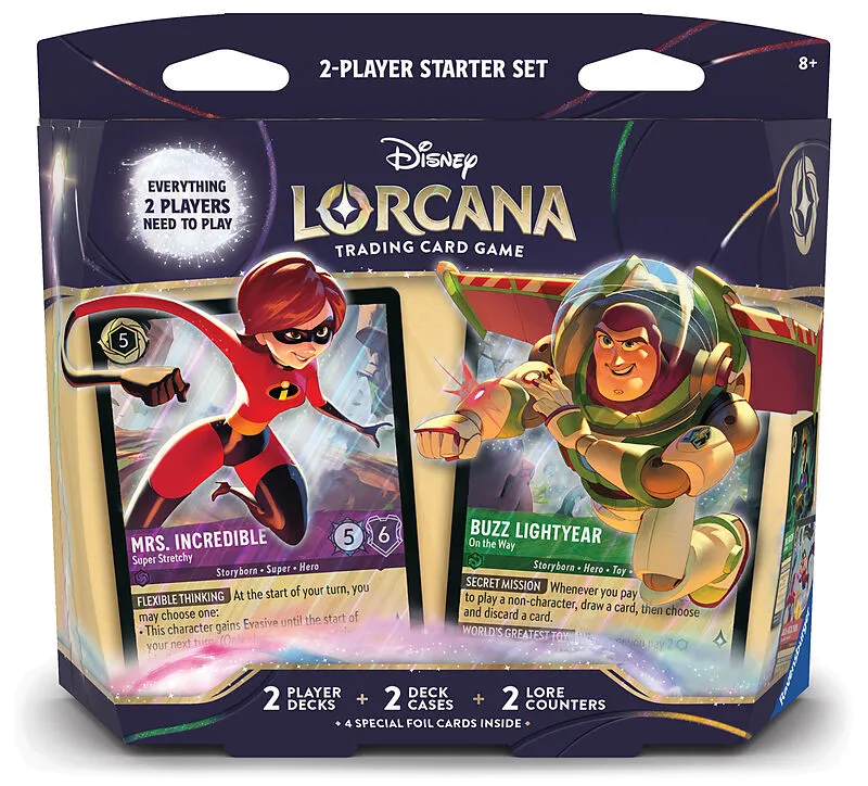 In Disney Lorcana erweckst du als Luminari mit sechs magischen Tinten Glimmer von Disney Charakteren zum Leben. Die Zwei-Spieler-Starterdecks enthalten alles, was zwei Spielende benötigen, um sofort loslegen zu können. Jedes der beiden vorgefertigten Decks ent...