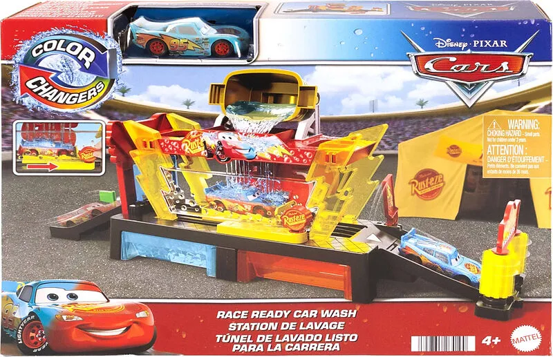 Das Disney Pixar Cars Autowaschanlagen-Spielset für Rennwagen mit Farbwechseleffekt lässt den Lightning McQueen für das nächste Rennen in neuem Glanz erstrahlen. Dieses interaktive Set mit bekannten Grafiken aus den Filmen und Serien und überraschendem Farbwec...