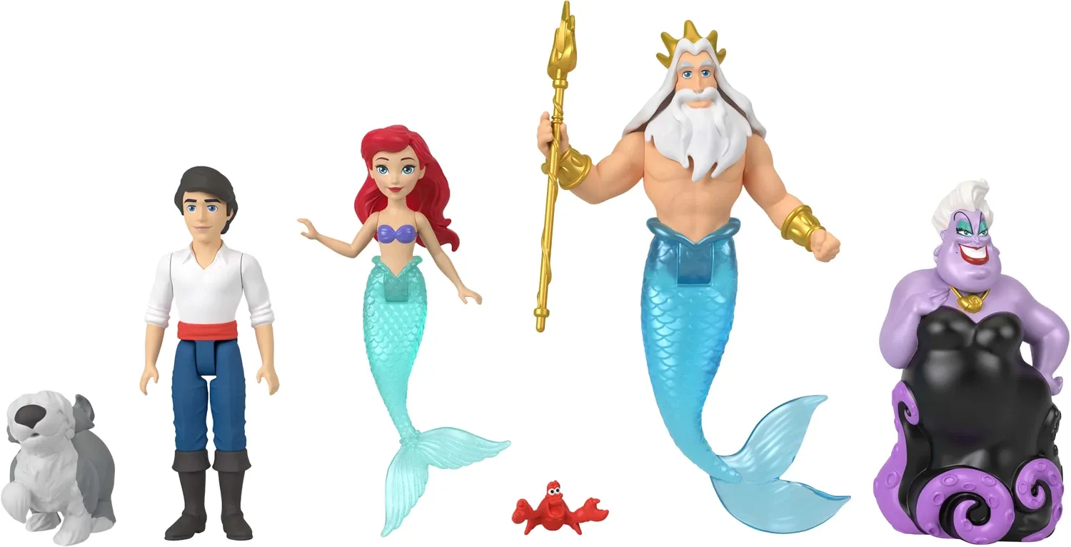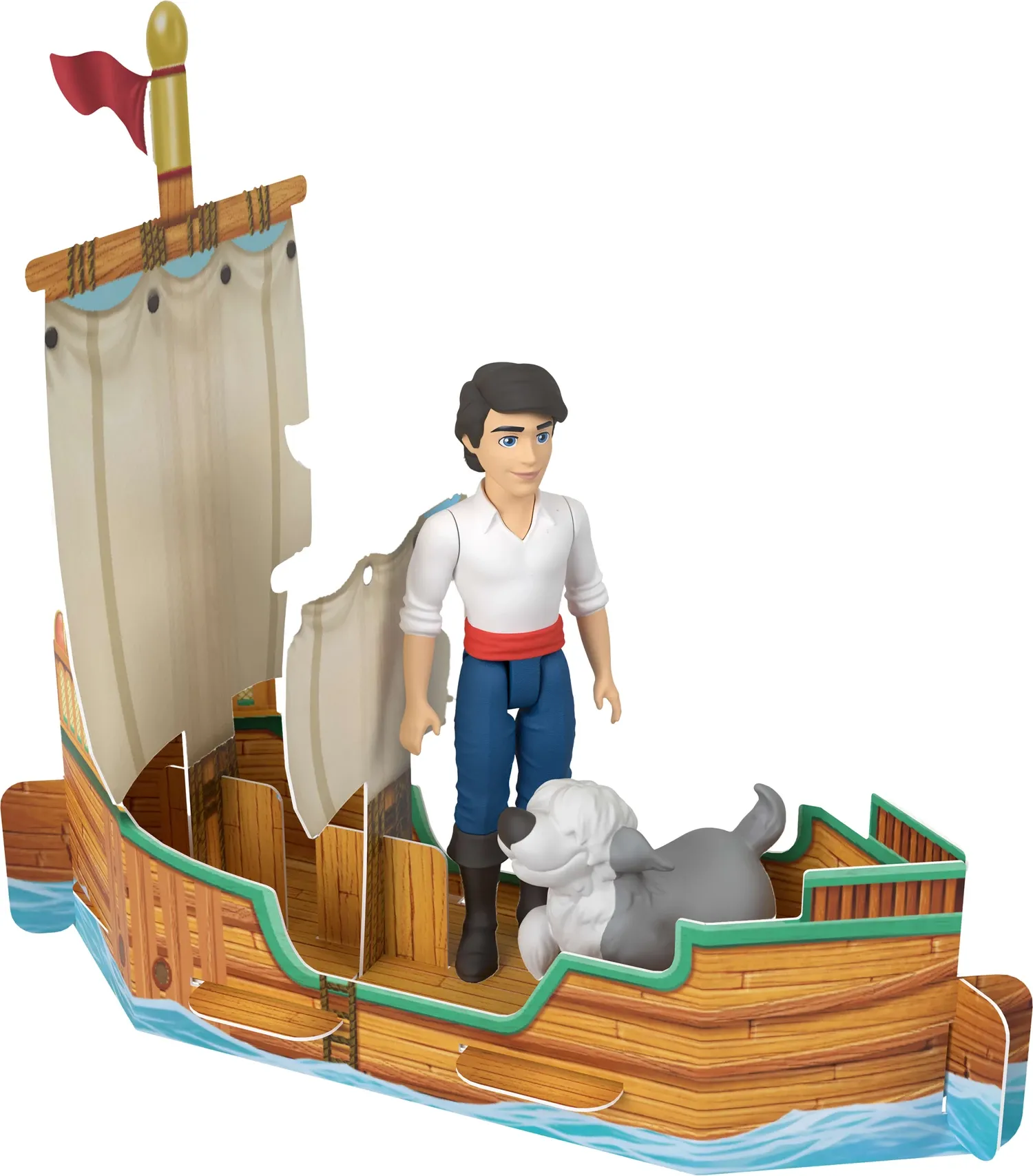 Das Buch enthält eine doppelseitige Kulisse und perforierte Teile, die die Kinder herausnehmen können. Die Puppe Arielle (9 cm) trägt ihren unverwechselbaren Meerjungfrauen-Look samt glitzernder Schwanzflosse.