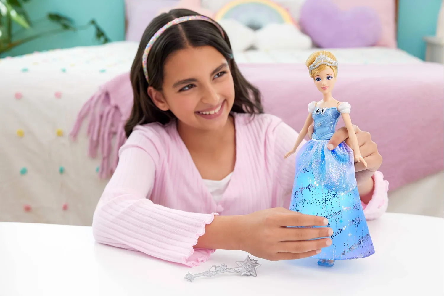 Disney Princess, Cinderella-Modepuppe im bezaubernden Ballkleid mit Licht und Geräuschen, vom Film inspiriert Mit der Cinderella-Puppe im bezaubernden Ballkleid werden unvergessliche Momente aus dem Disney-Film wahr der magische Zauberstab verwandelt Cinderell...