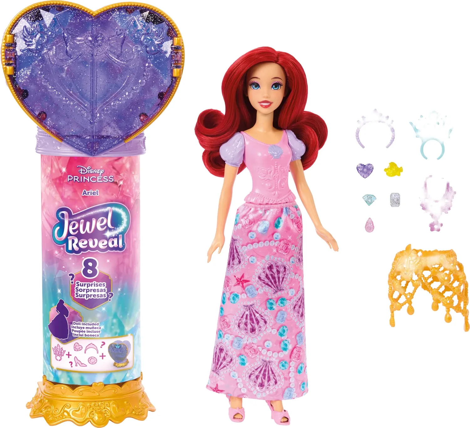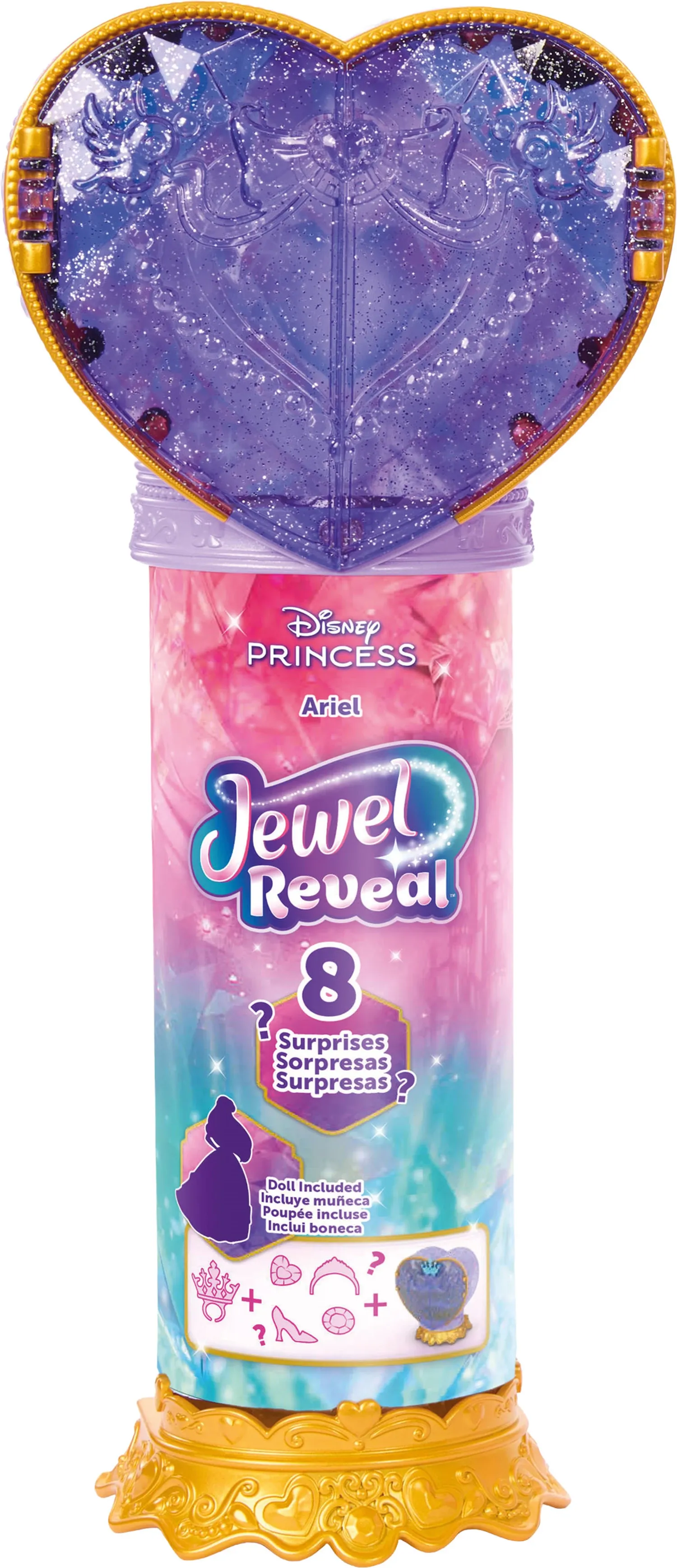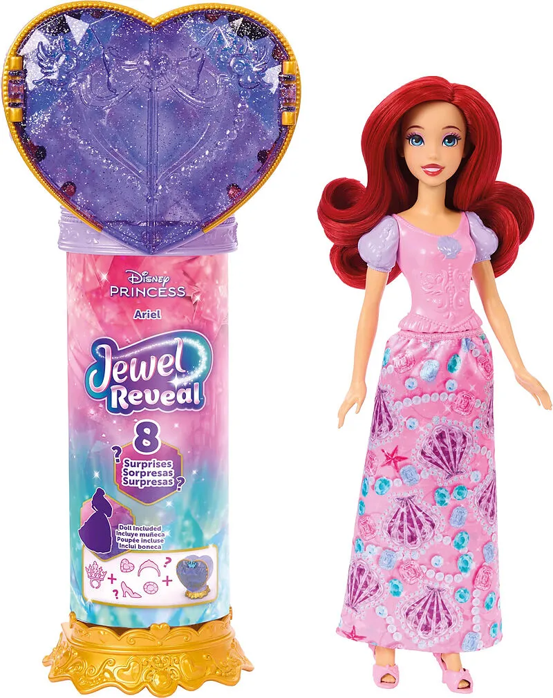 Disney Prinzessin Juwel Reveal Ariel Puppe Mit einer Überraschungs-Modepuppe und Accessoires kombiniert die Disney Jewel Reveal Ariel-Puppe Geschichtenerzählen und Überraschung für ein bezauberndes Auspackerlebnis! Öffnen Sie das funkelnde lila Herz oben - und...