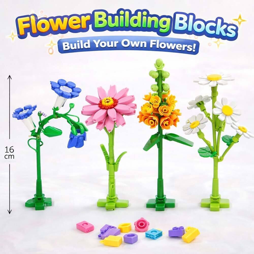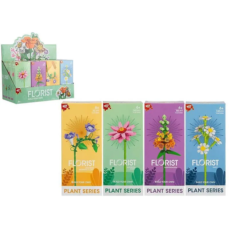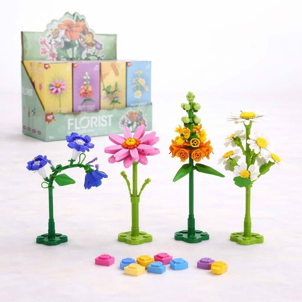 Display mit 12 Stk.: Flower Building Blocks, Serie 2, 4-fach sort., 16 cm