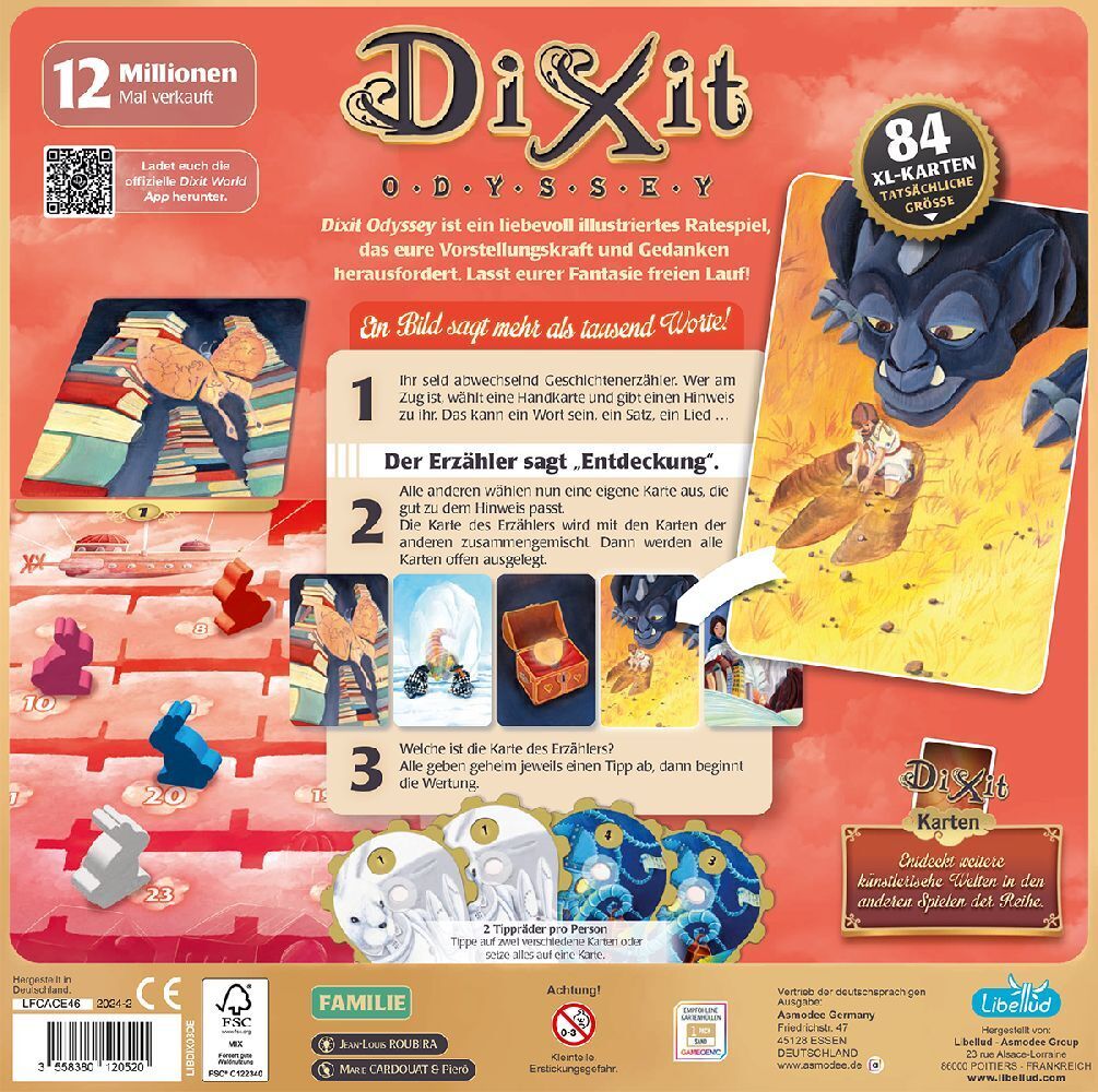 Das Familienspiel Dixit Odyssey ist ein liebevoll illustriertes Ratespiel, das eure Vorstellungskraft und Gedanken herausfordert. In jeder Runde übernimmt einer von euch die Rolle des Erzählers. Als Erzähler erhältst du Punkte, indem du den anderen einen Hinwe...