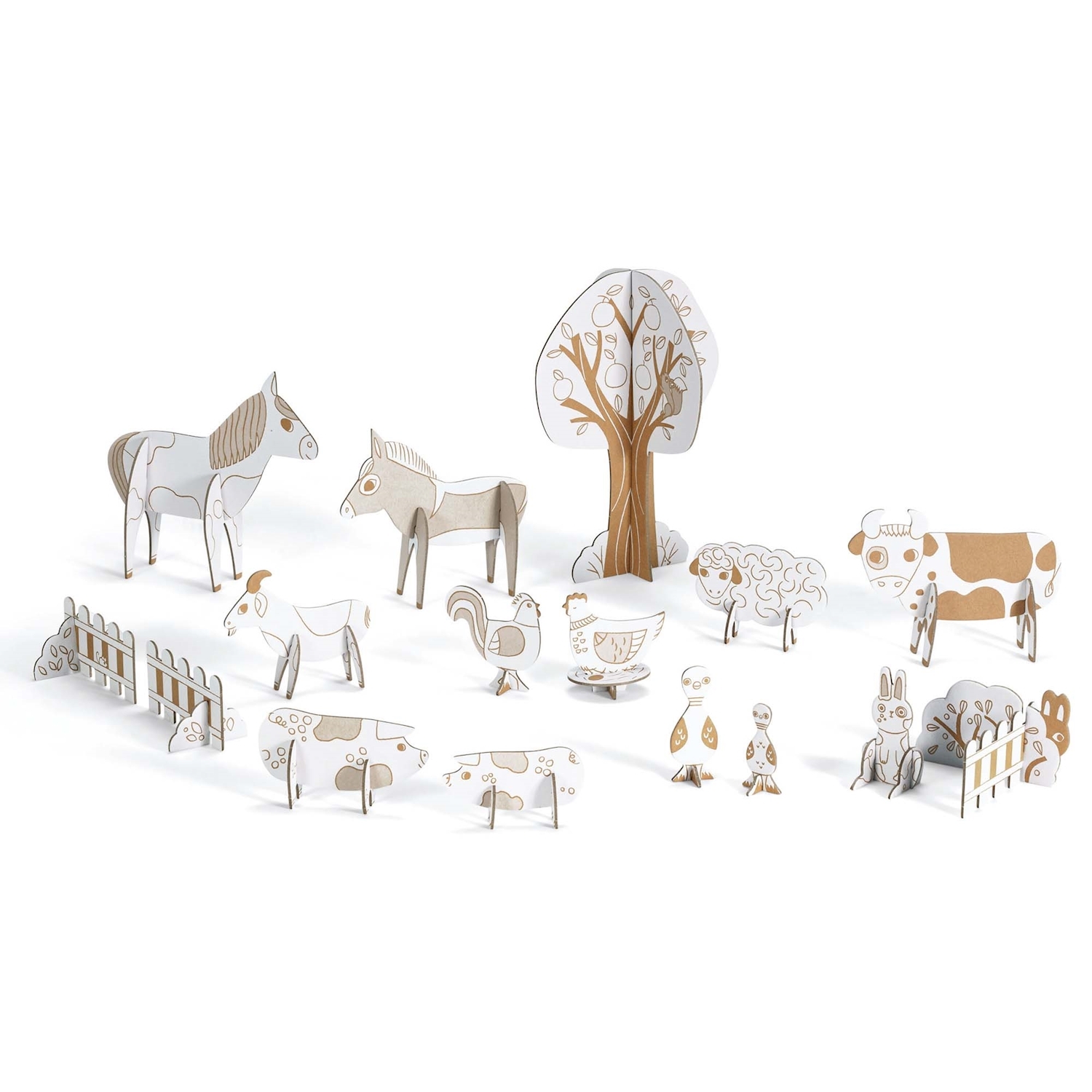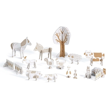 ab 5 Jahren Ein Kreativset mit einer Vielzahl von Kartonteilen zum Ausmalen und Zusammenbauen, um niedliche Tiere und die passende Dekoration zu basteln. Das kreative Vergnügen des Ausmalens in Kombination mit dem Bauen von 3D-Gegenständen. Für kreative Spiels...