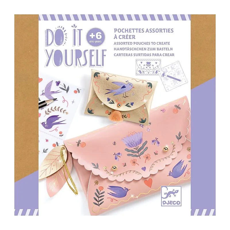 ab 6 Jahren Ein Kreativset, mit dem man ein Set aus einer passenden Tasche und einer Geldbörse aus Kunstleder herstellen kann. Mithilfe eines Bleistifts reibt das Kind die Abziehbilder ab, um sie nach den vorgeschlagenen Mustern oder nach seinen Wünschen auf d...