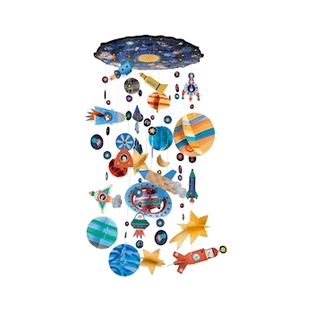 ab 6 Jahren Ein kreativer Workshop zur Herstellung einer grossen Hängedeko zum Thema Sonnensystem. Das Kind bemalt die Planeten und Sterne mit den acht Gouachefarben. Sobald sie getrocknet sind, schiebt es sie auf den Faden, um Girlanden zu erstellen, die der ...