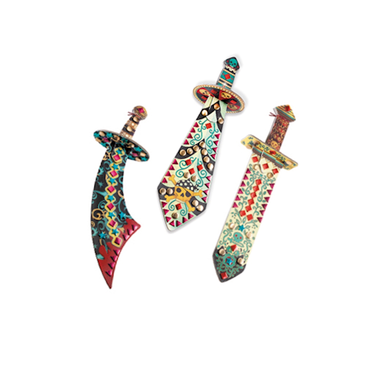 ab 5 Jahren 10 x 37cm 3 x Schwert inkl. Parier (dicke Pappe) 4 x Mosaik-Bogen Gestalte mit diesem coolen Set deine eigenen Piratenschwerter und lasse deiner Kreativität freien Lauf.