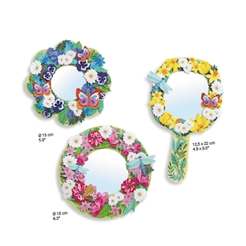 ab 6 Jahren 3 x Spiegel (bruchsicheres Acryl) Diverse Blumen zum verzierern Gestalte mit diesem süssen Set deine eigenen Spiegel und lasse deiner Kreativität freien Lauf.