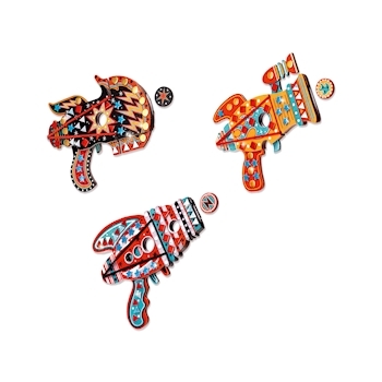 ab 5 Jahren Ein kreatives Set mit 3 Katapultmodellen für die Chips, die mit Mosaikaufklebern verziert werden. Das Kind sucht die Zahlen auf den Katapulten und klebt die entsprechenden Aufkleber darauf. Wenn Sie alle drei Modelle fertiggestellt haben, müssen Si...