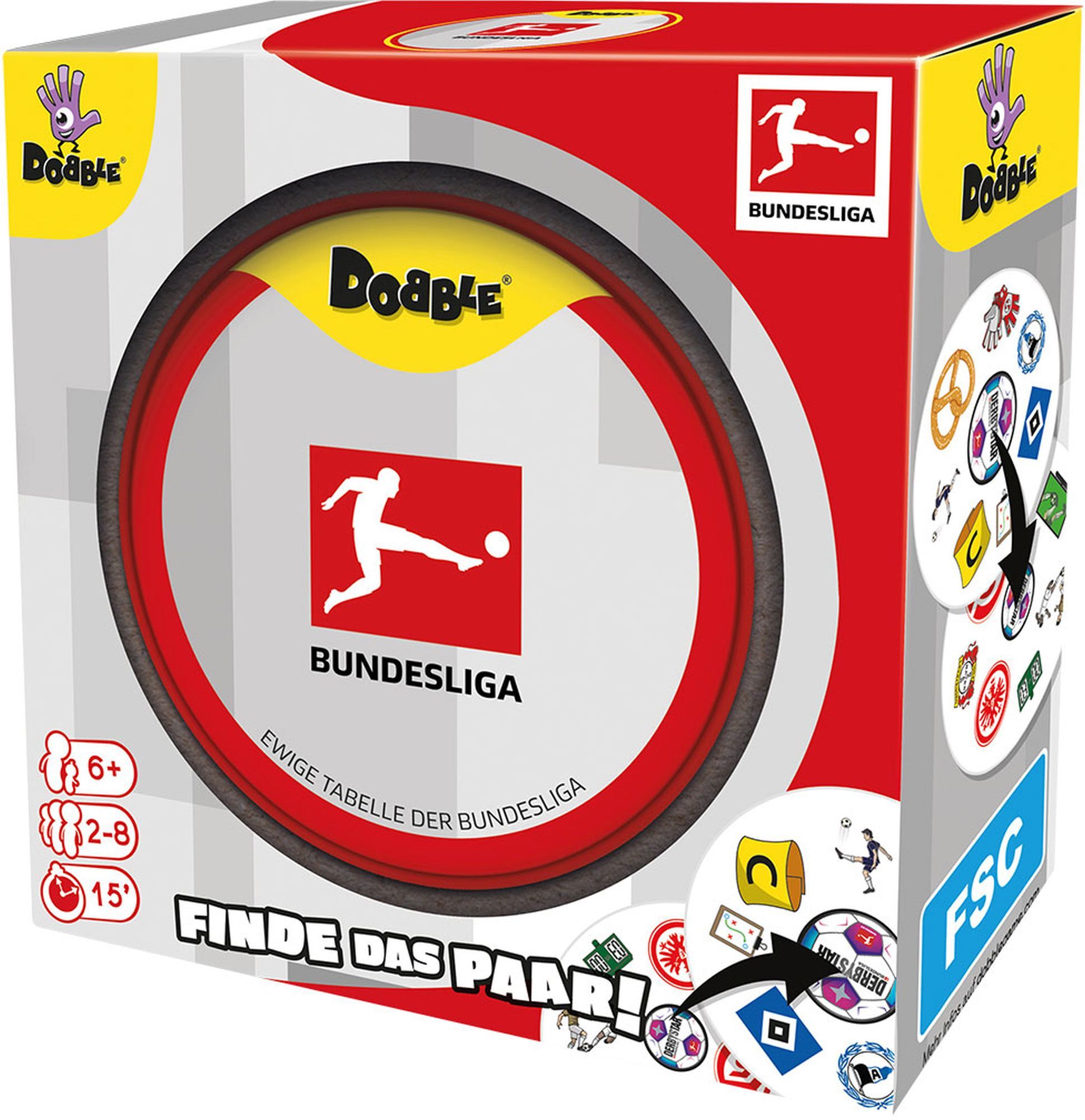 Dobble Bundesliga Wie gut kennt ihr die Club-Logos der Bundesliga? Die 55 Karten zeigen Symbole rund um den Fußball, darunter die Club-Logos aus der ewigen Tabelle der Bundesliga. Einfach, schnell genial: Dobble Bundesliga ist das ultimative Reaktionsspiel für...
