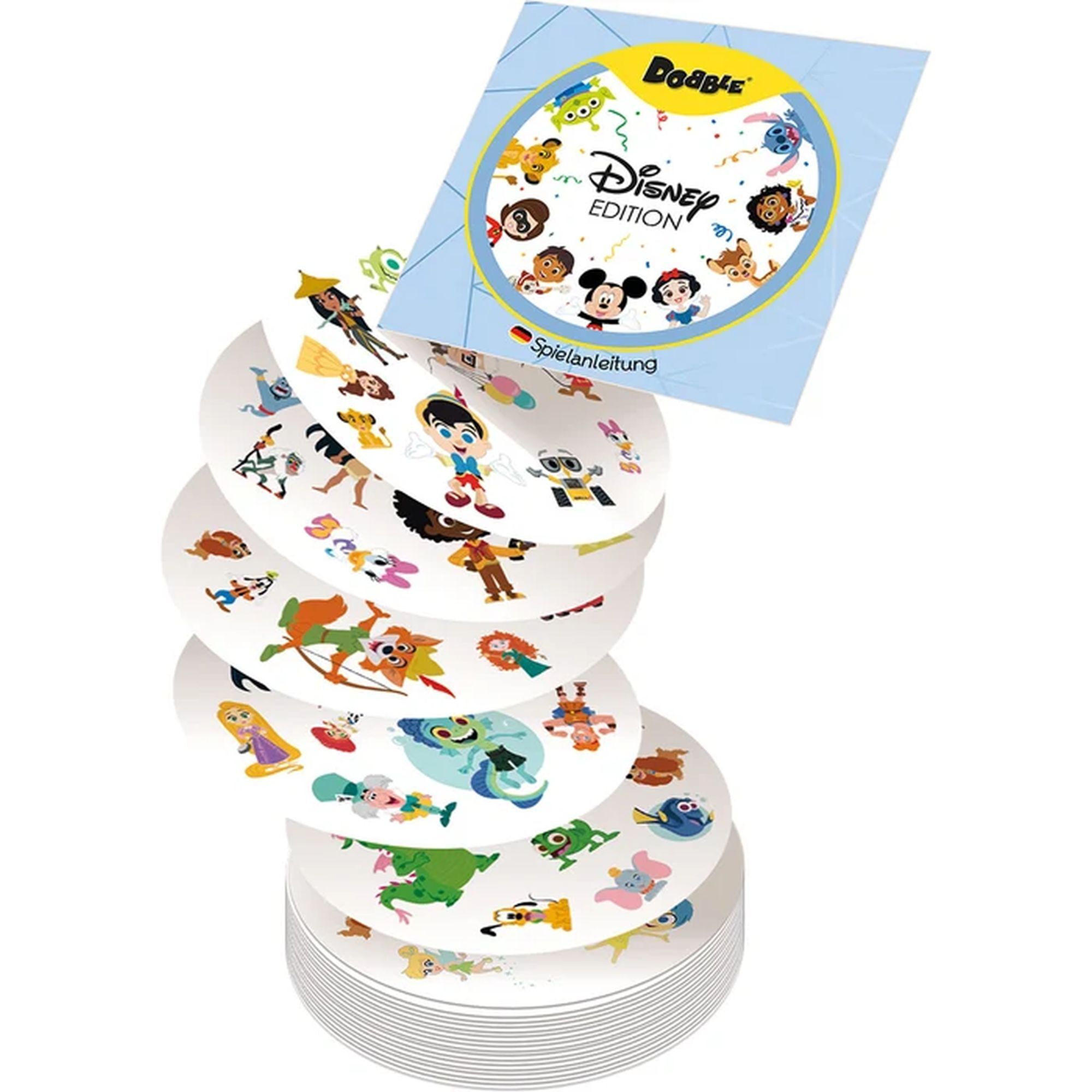 Dobble Disney Edition Finde in dieser Sonderedition von Dobble das Paar unter deinen liebsten Disney- und Pixar-Charakteren. Schau genau und sei schnell. Dobble Disney Edition ist ein kartenbasiertes Reaktionsspiel mit fünf verschiedenen Spielvarianten. Bei al...