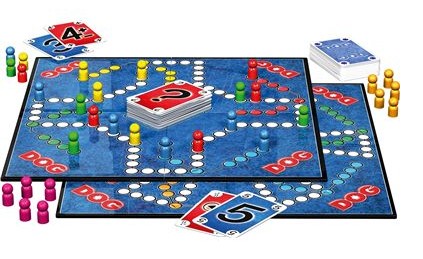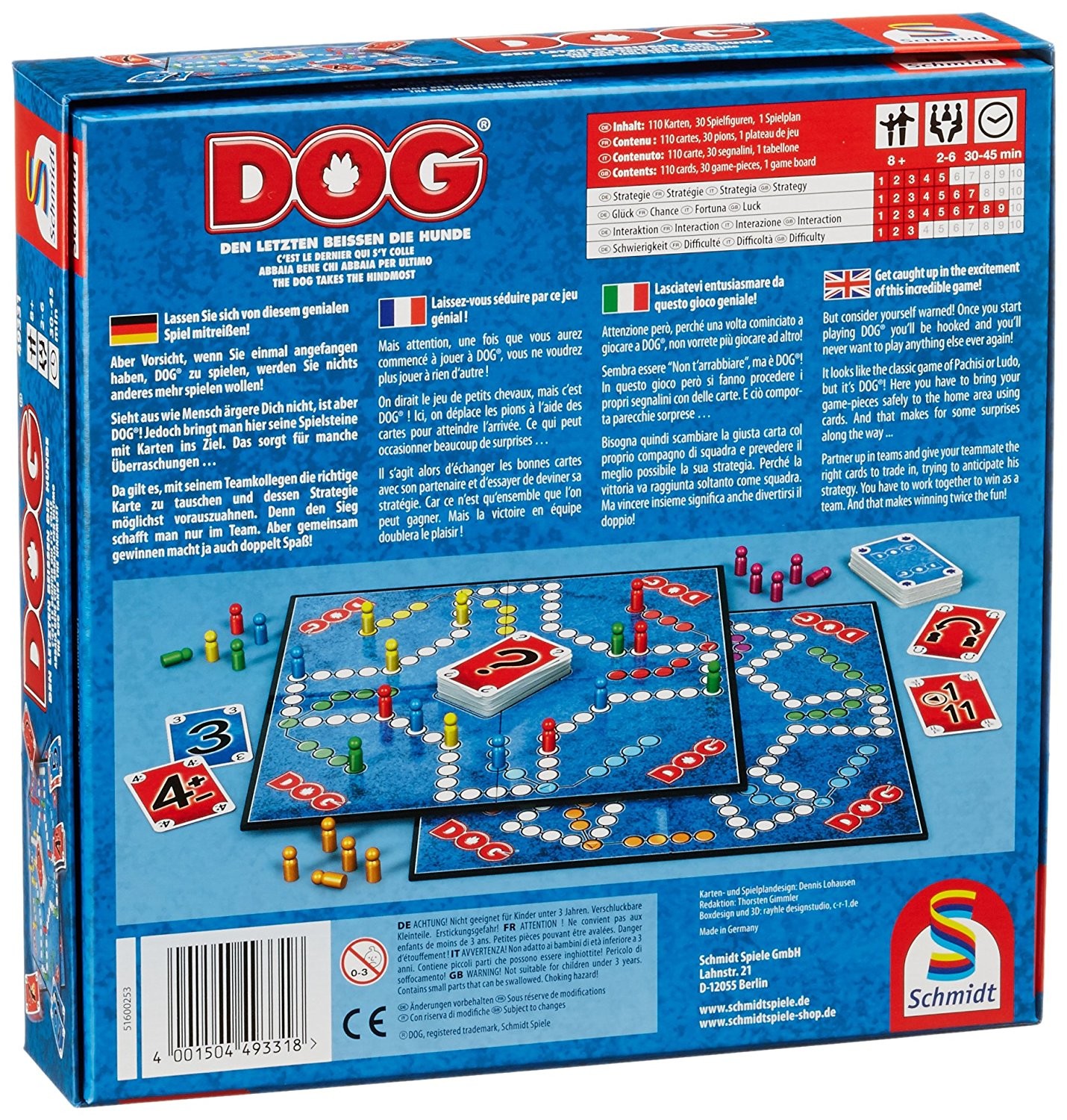 Schmidt Spiele DOG Sieht aus wie MENSCH ÄRGERE DICH NICHT, ist aber DOG! Das Einzige, was gleich ist, ist, dass man seine vier Spielsteine sicher in sein Häuschen bringen muss. Allerdings bewegt man sie mit Karten vorwärts, die so manche Überraschung parat hal...