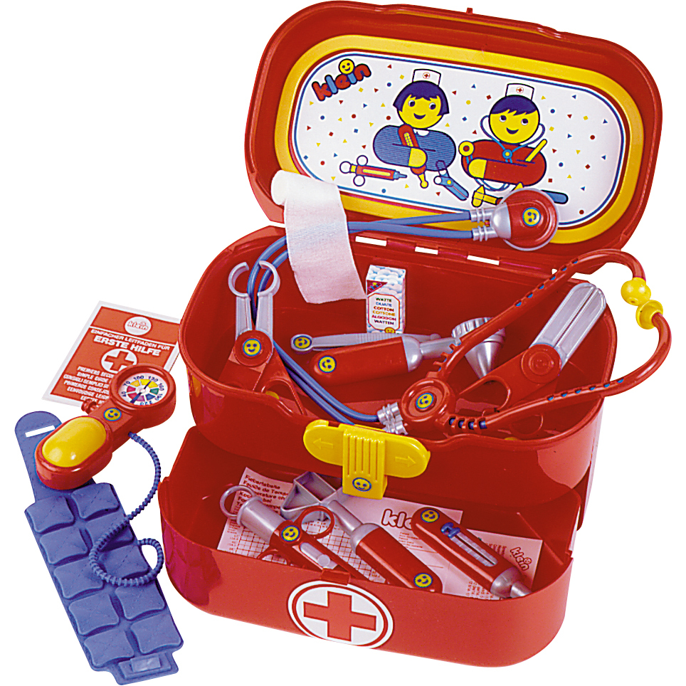 Theo Klein Doktor Etagen Koffer Arztkoffer - Robuster Koffer mit praktischem Tragegriff Mit zahlreichem Zubehör: Elektronischem Blutdruckmesser mit Sound, Stethoskop, Thermometer, Reflexhammer, Spritze, Pinzette, Ohrenspiegel, 2 Scheren, Pflaster, Erste Hilfe ...